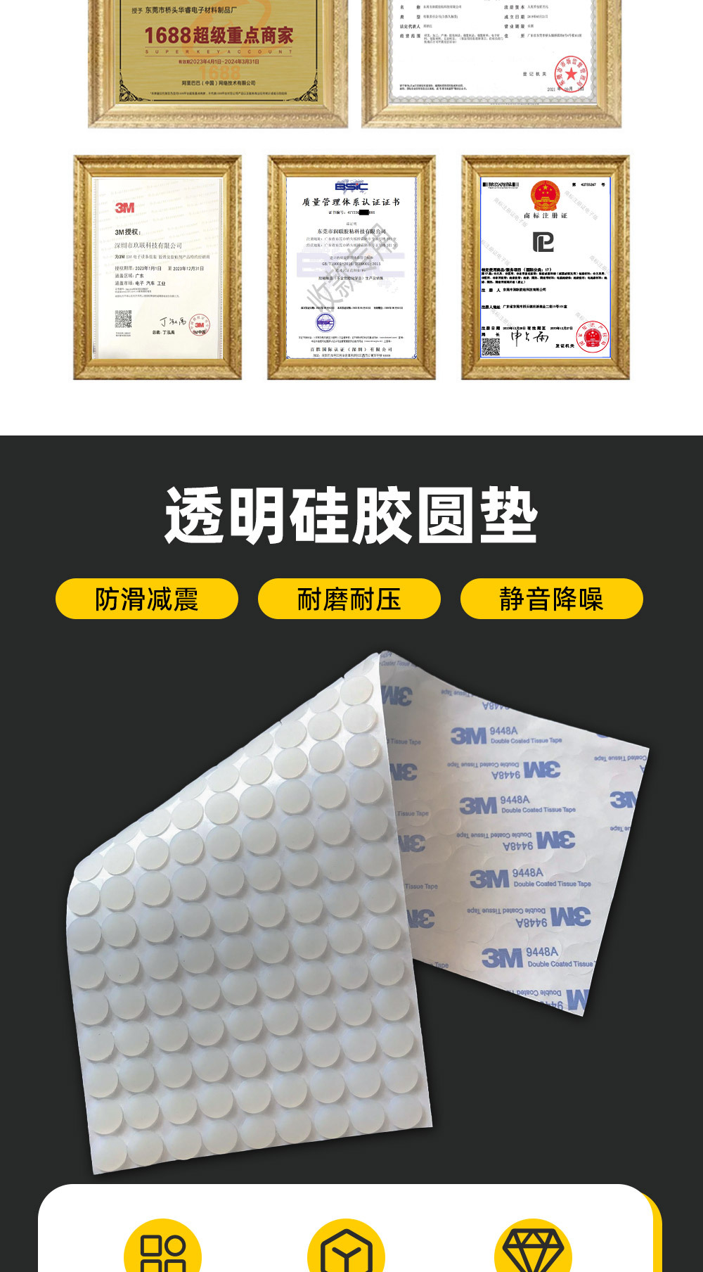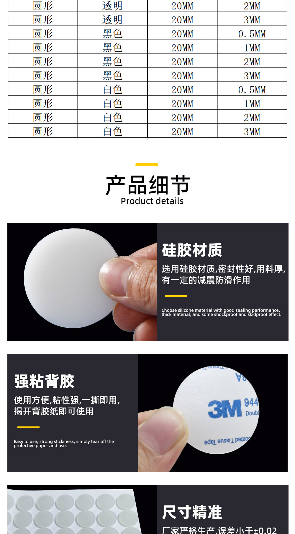 透明シリコンパッド自己粘着携帯電話スタンドシリコンウエハ円形滑り止め静音貼付耐摩耗性免震シリコンパッド
