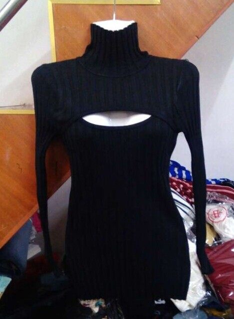 春の服の新型日本の高襟の胸のセーターのファッション的なセクシーな胸のセーターの女性のニットの底のシャツ