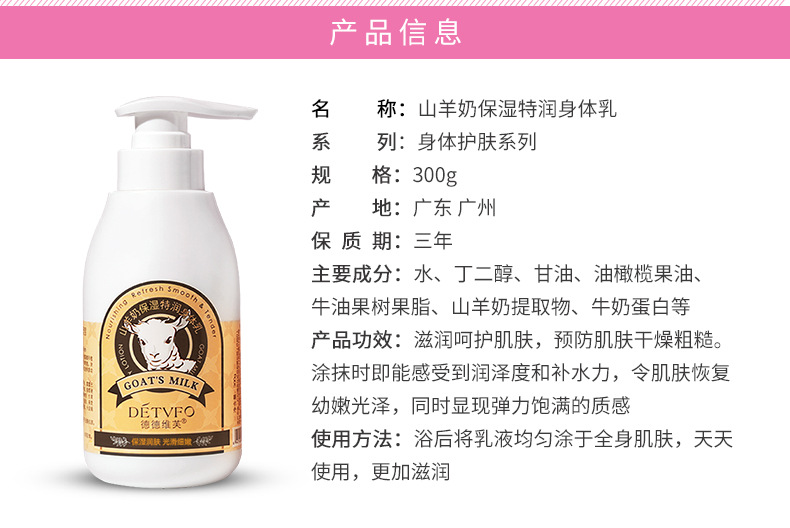 徳徳維芙の羊の乳の体の乳は水を潤して水を潤して保湿します。