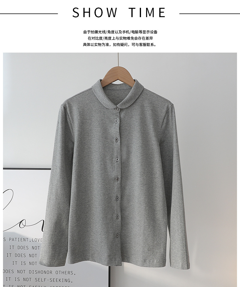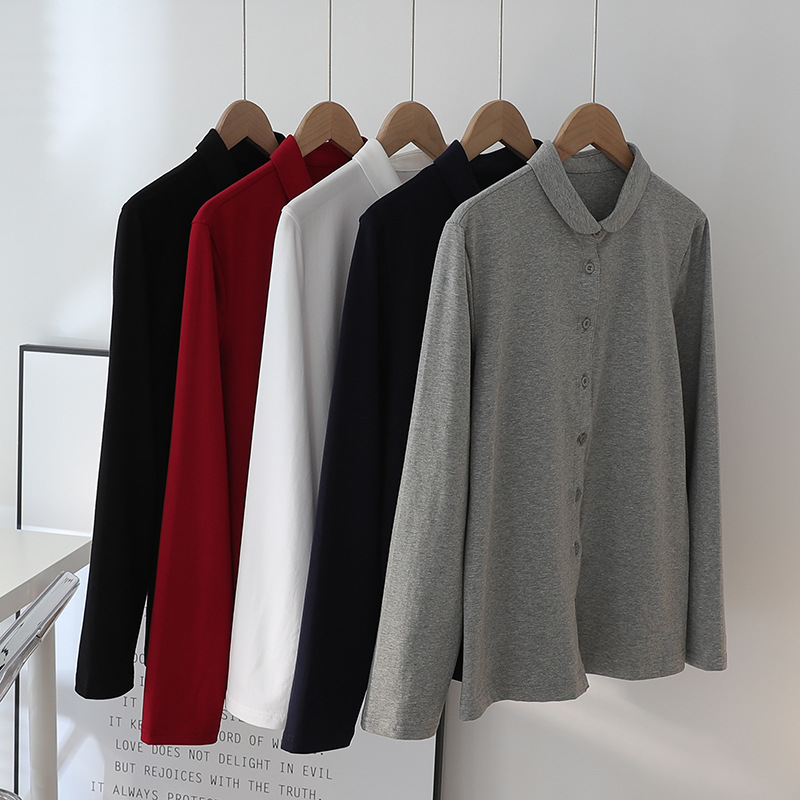 多用途で快適な女性用秋冬ボトムシャツ、ニットストレッチコットン長袖白シャツ、肌に優しく暖かいシャツ