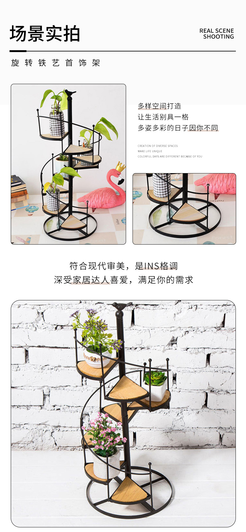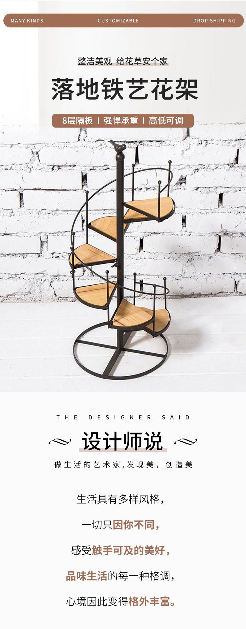 床置き花棚吊り多層鉄芸卸売りベランダ台形ミニ室内緑羅客間植木鉢実木花棚