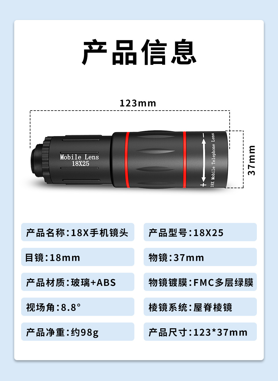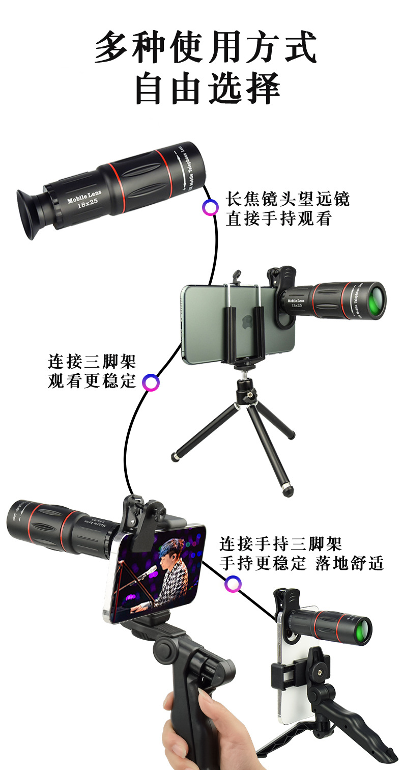 国境を越えた卸売携帯電話単眼鏡18倍外付け望遠レンズ屋外撮影高画質遠撮レンズ