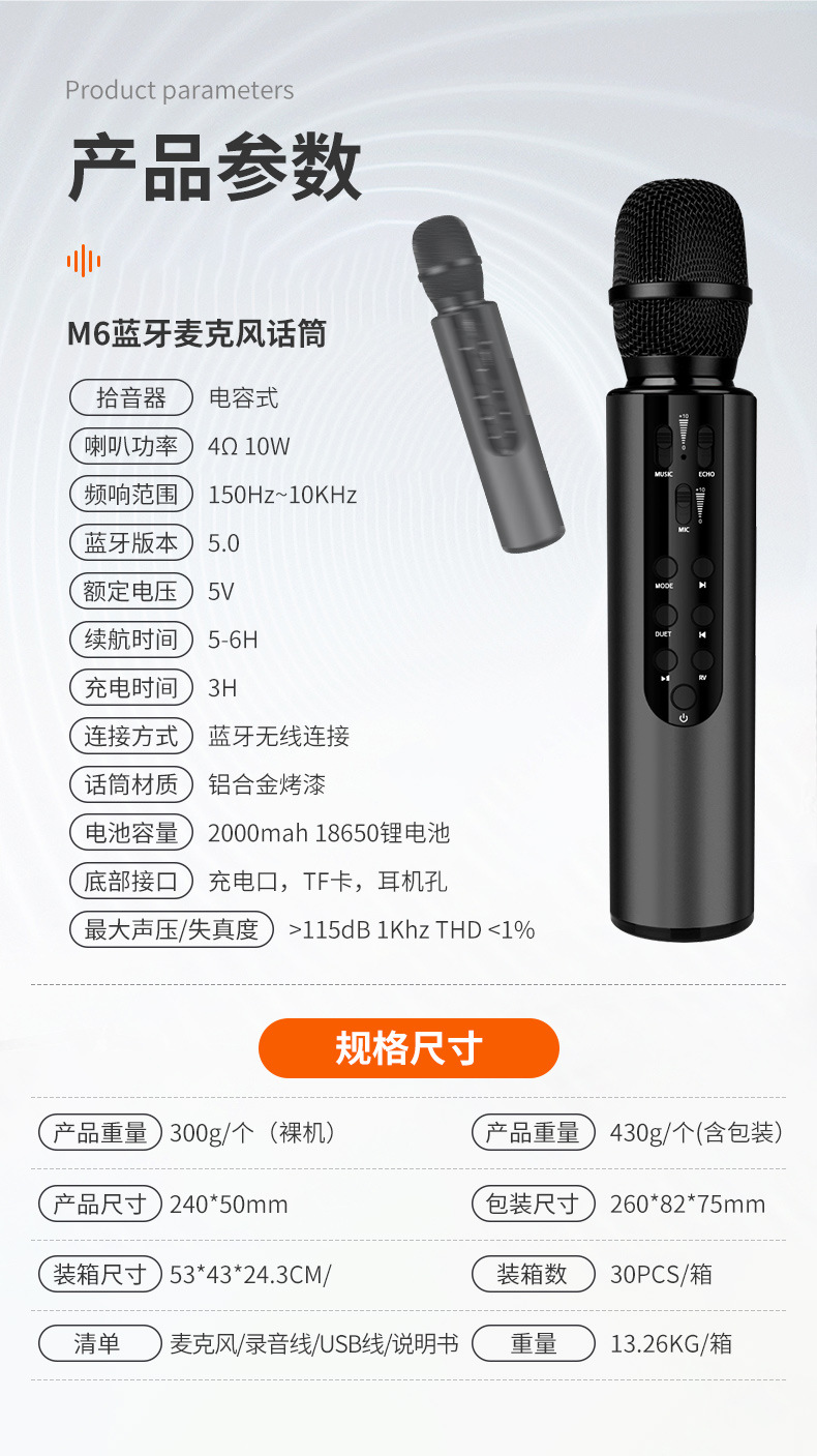 在庫ありの人気商品M6 Bluetoothマイク、スピーカー一体型マイク、カラオケ神器、練歌用マイク、卸売