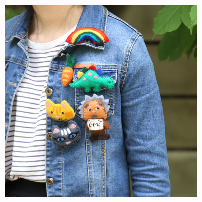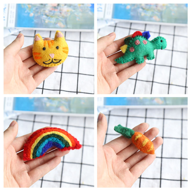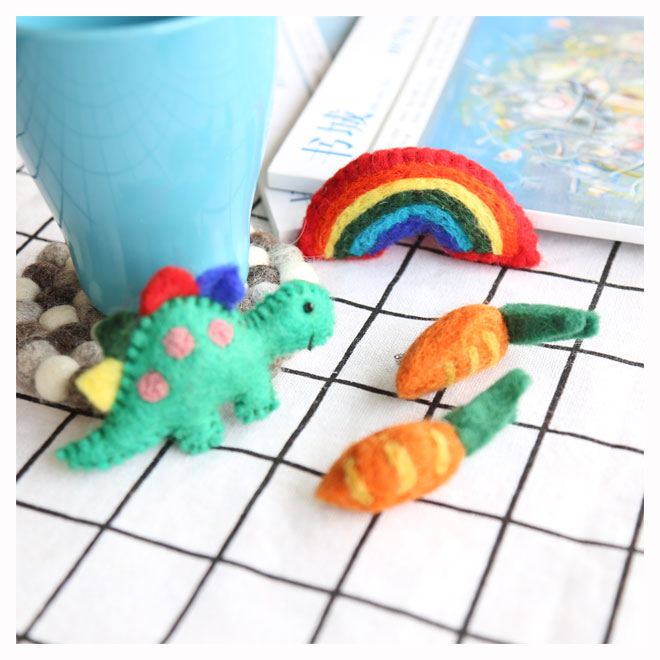 ネパールの手作りの子猫の子犬の恐竜の虹のウールのフェルトの子供の趣味のかわいいブローチのピンのマフラーの包みの装飾