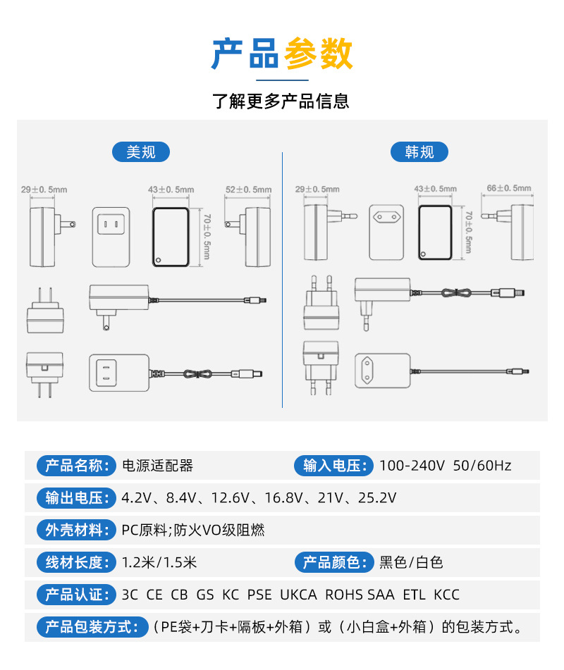CCC/CQCミドルゲージ-25.2V1A,PSE日規-25.2V1A,KC/KCC韓規-25.2V1A,CE/GSヨーロッパ規格-25.2V1A,ETL/FCC美規-25.2V1A,UKCA/CE英规-25.2V1A,SAAオーストラリア規格-25.2V1A