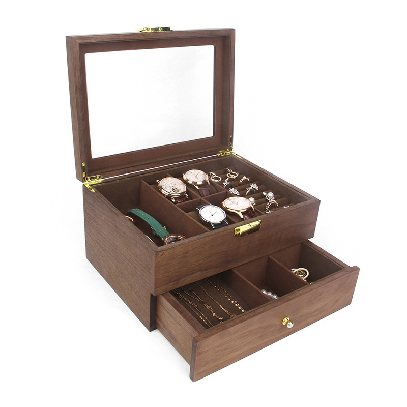 6+3 二重層ウォールナット時計ジュエリーボックス/コーヒー色の内側;