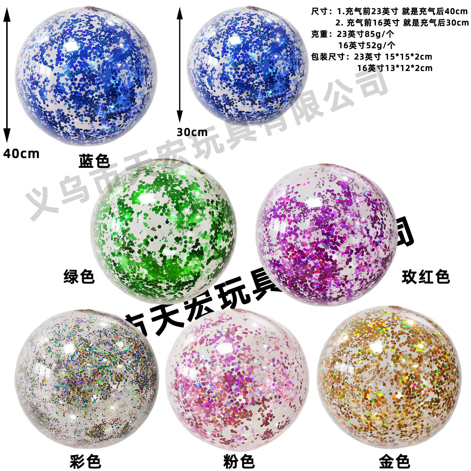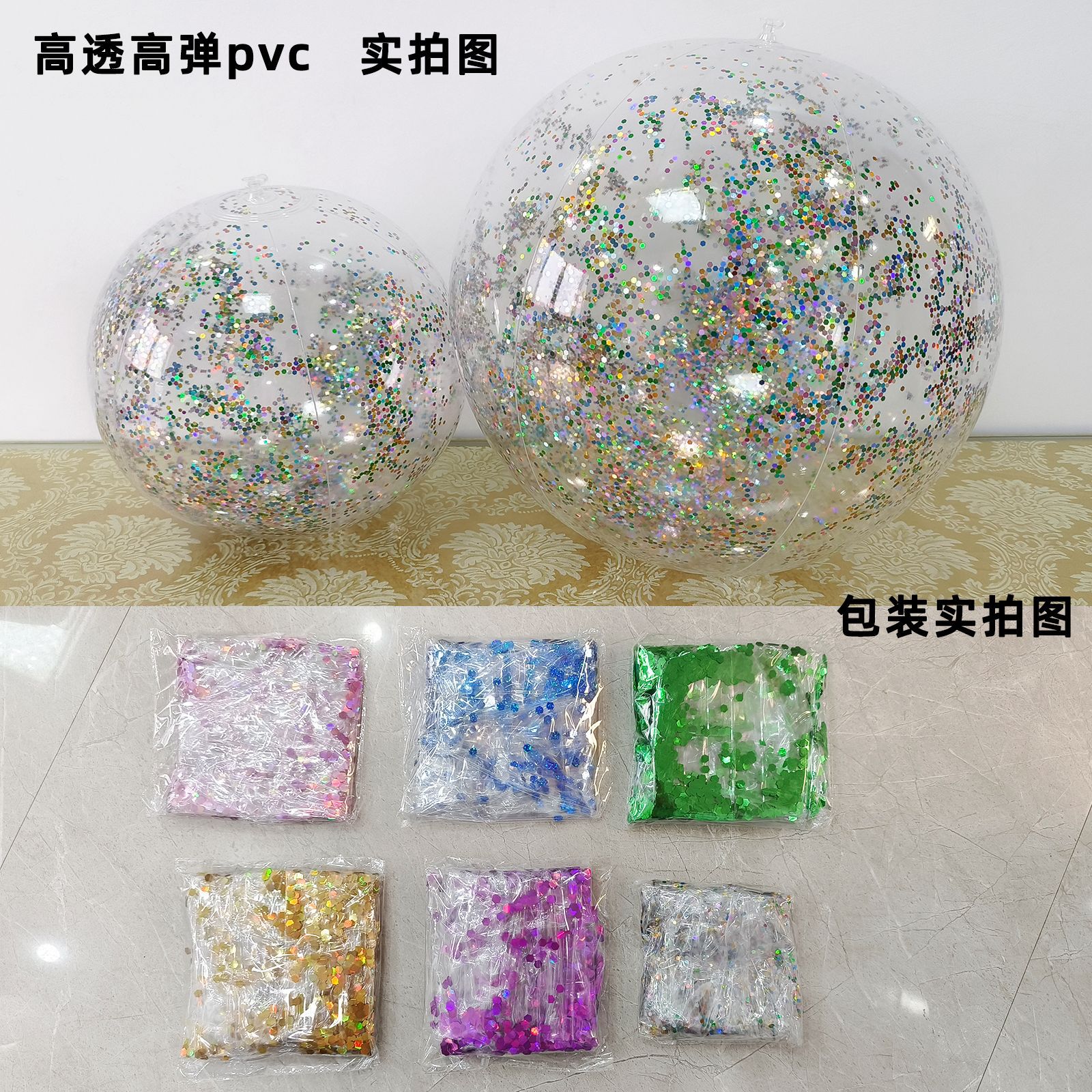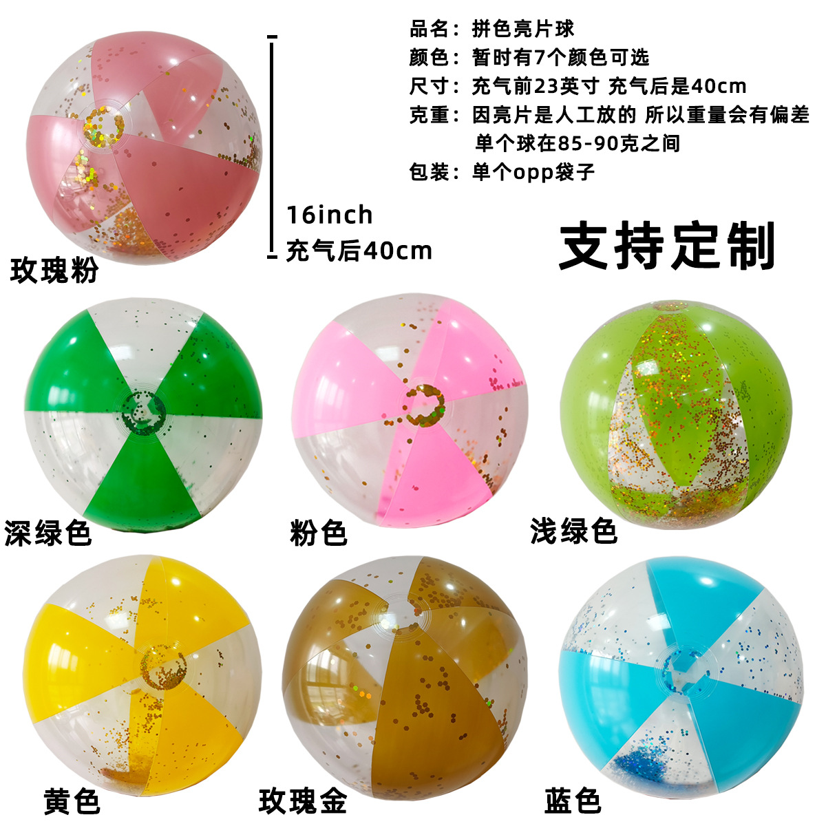 16インチpvcインフレータブルビーチボール国境を越えたインフレータブル水遊びボール色紙屑スパンコールボールカスタムロゴバルーン