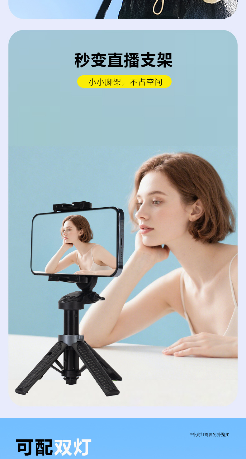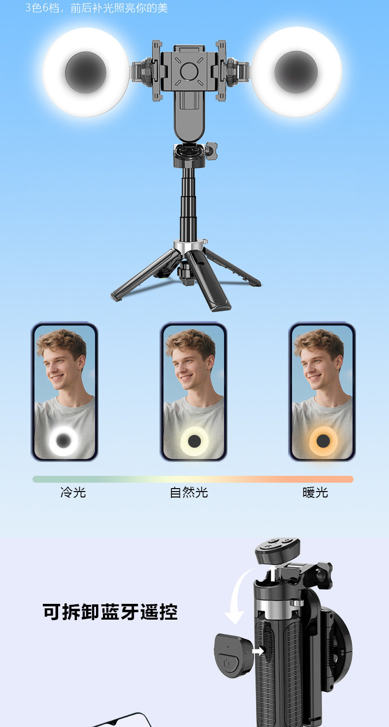 2025新型自撮り棒通用三脚vlog撮影神器360度回転携帯電話生放送bluetoothサポート
