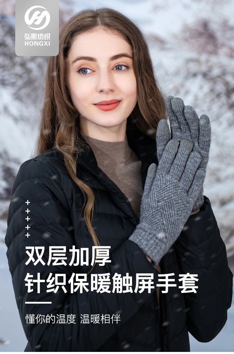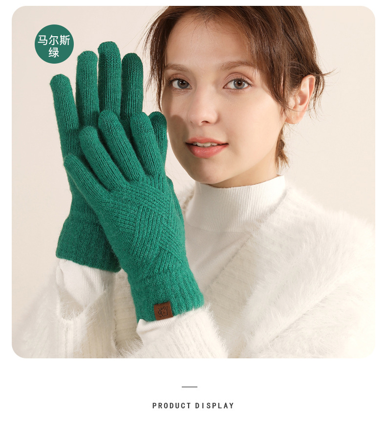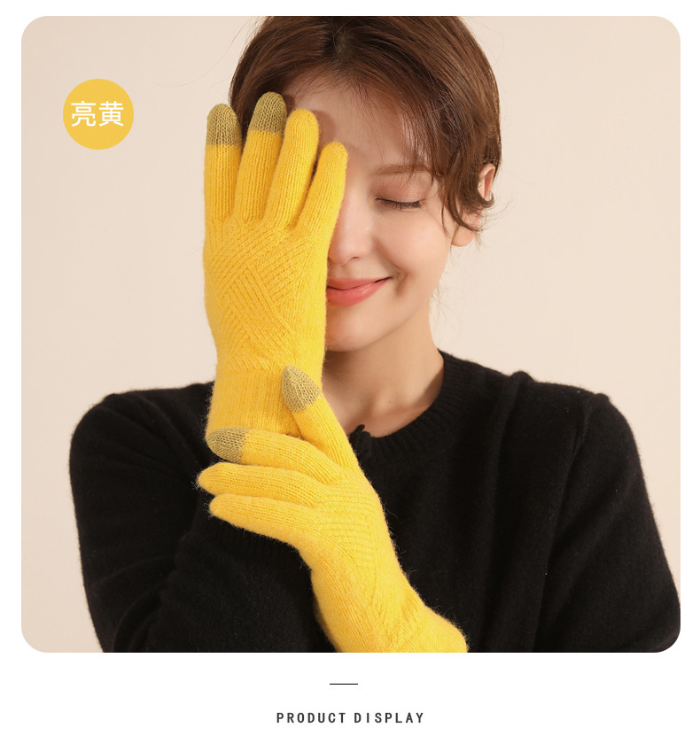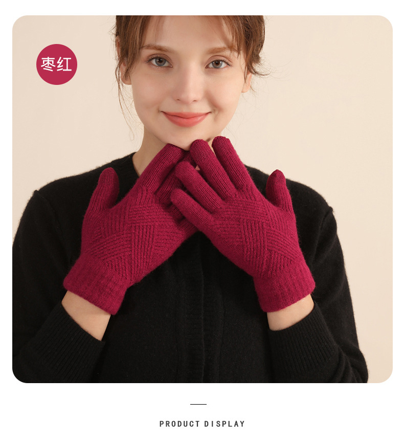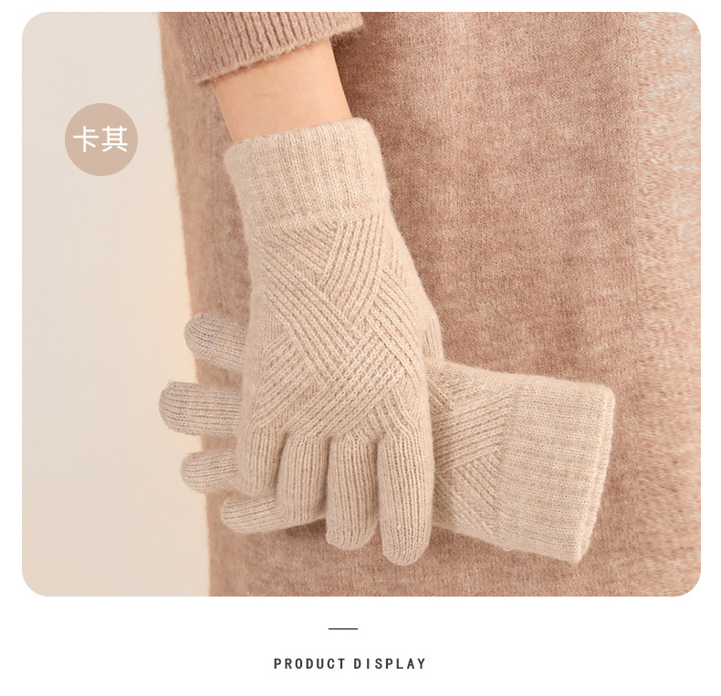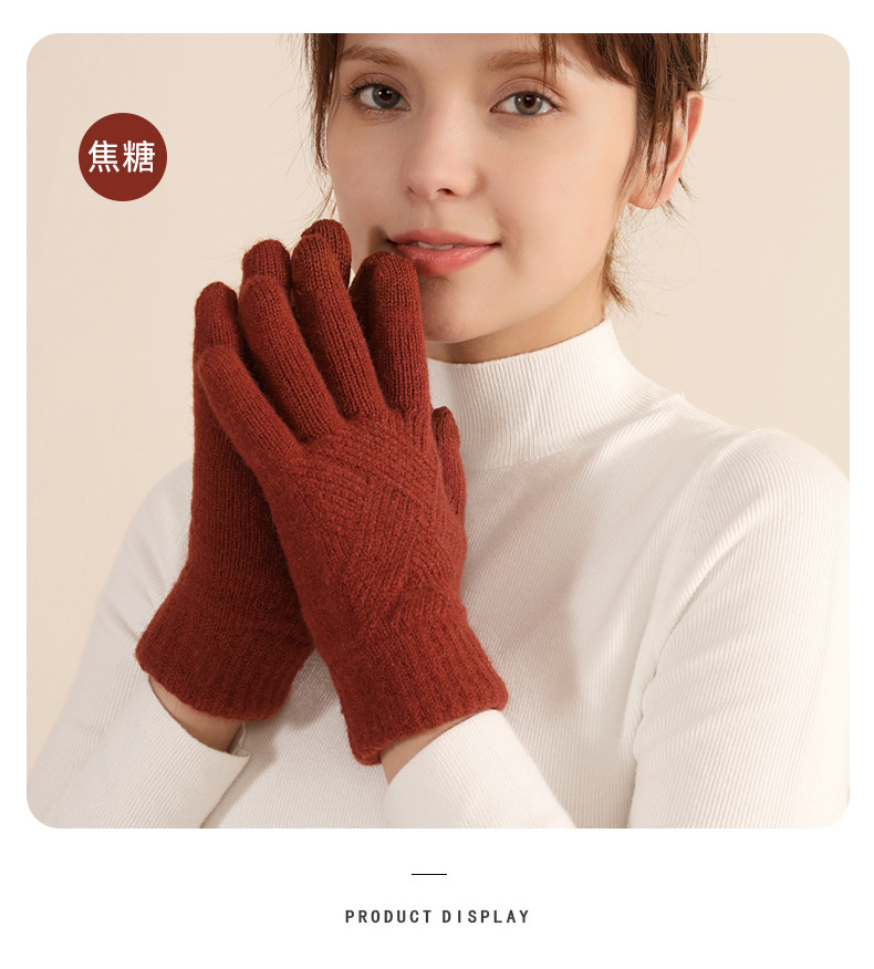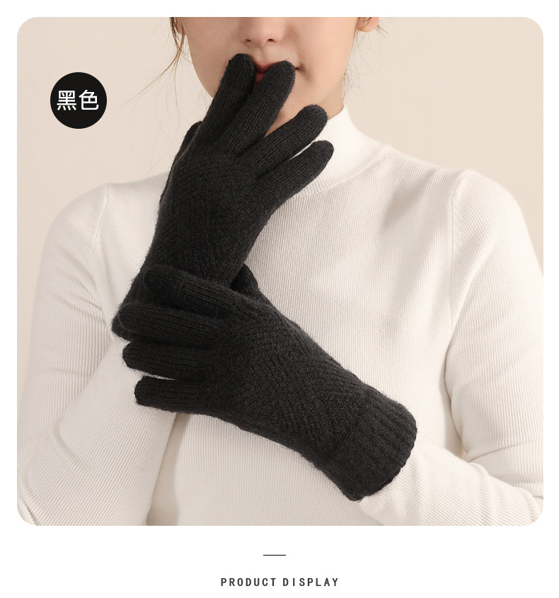 国境を越えた人気の女性用冬用ニット手袋、二重層プラスベルベットと厚みのあるタッチスクリーン手袋、男性用サイクリング防寒暖かい手袋