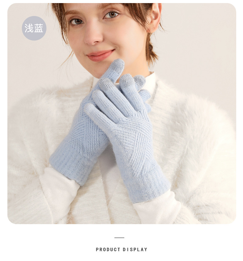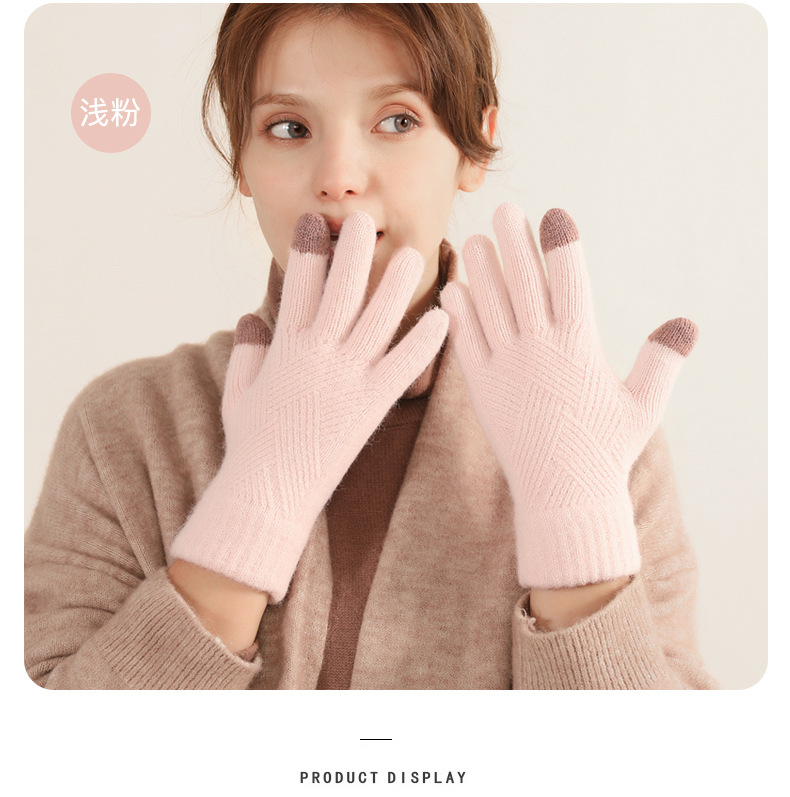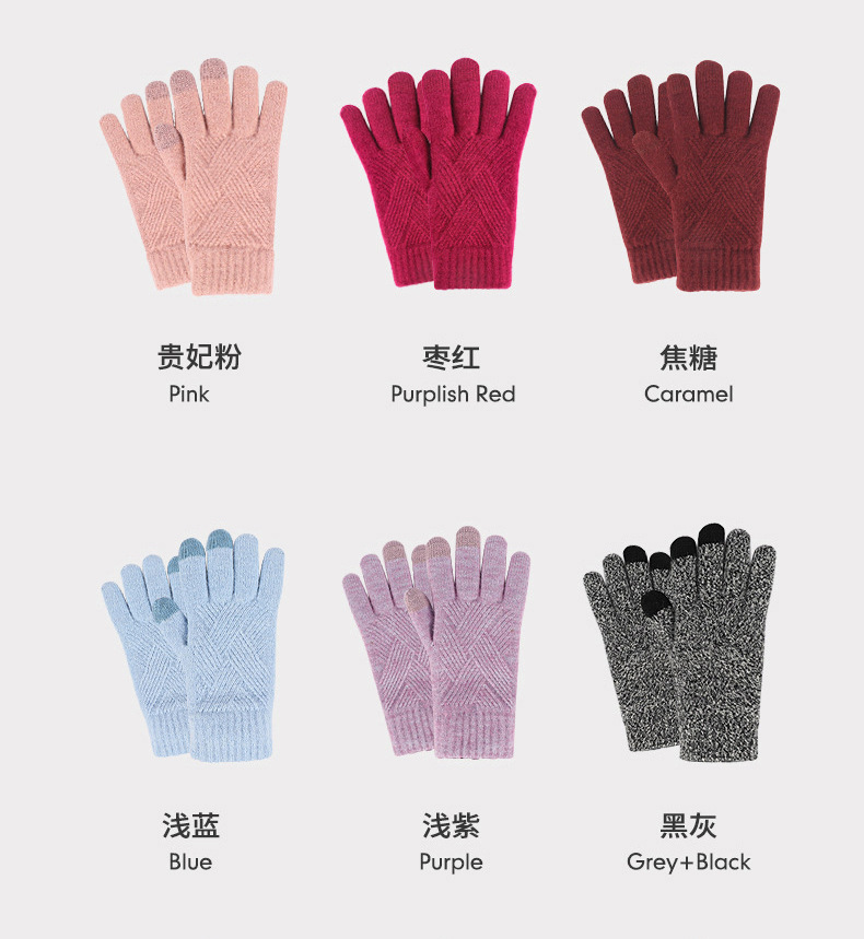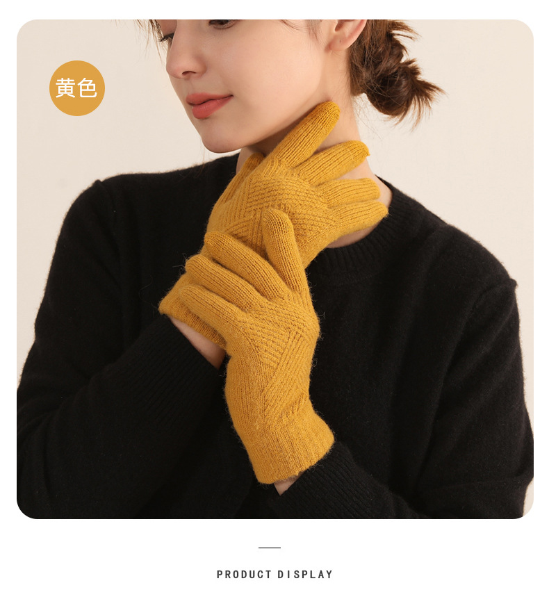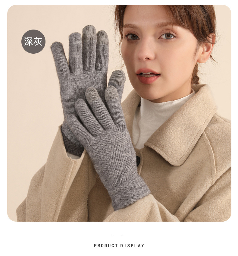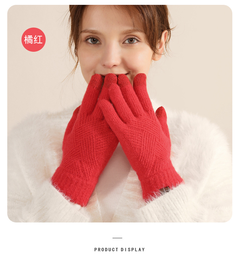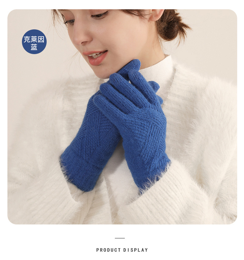 国境を越えた人気の女性用冬用ニット手袋、二重層プラスベルベットと厚みのあるタッチスクリーン手袋、男性用サイクリング防寒暖かい手袋