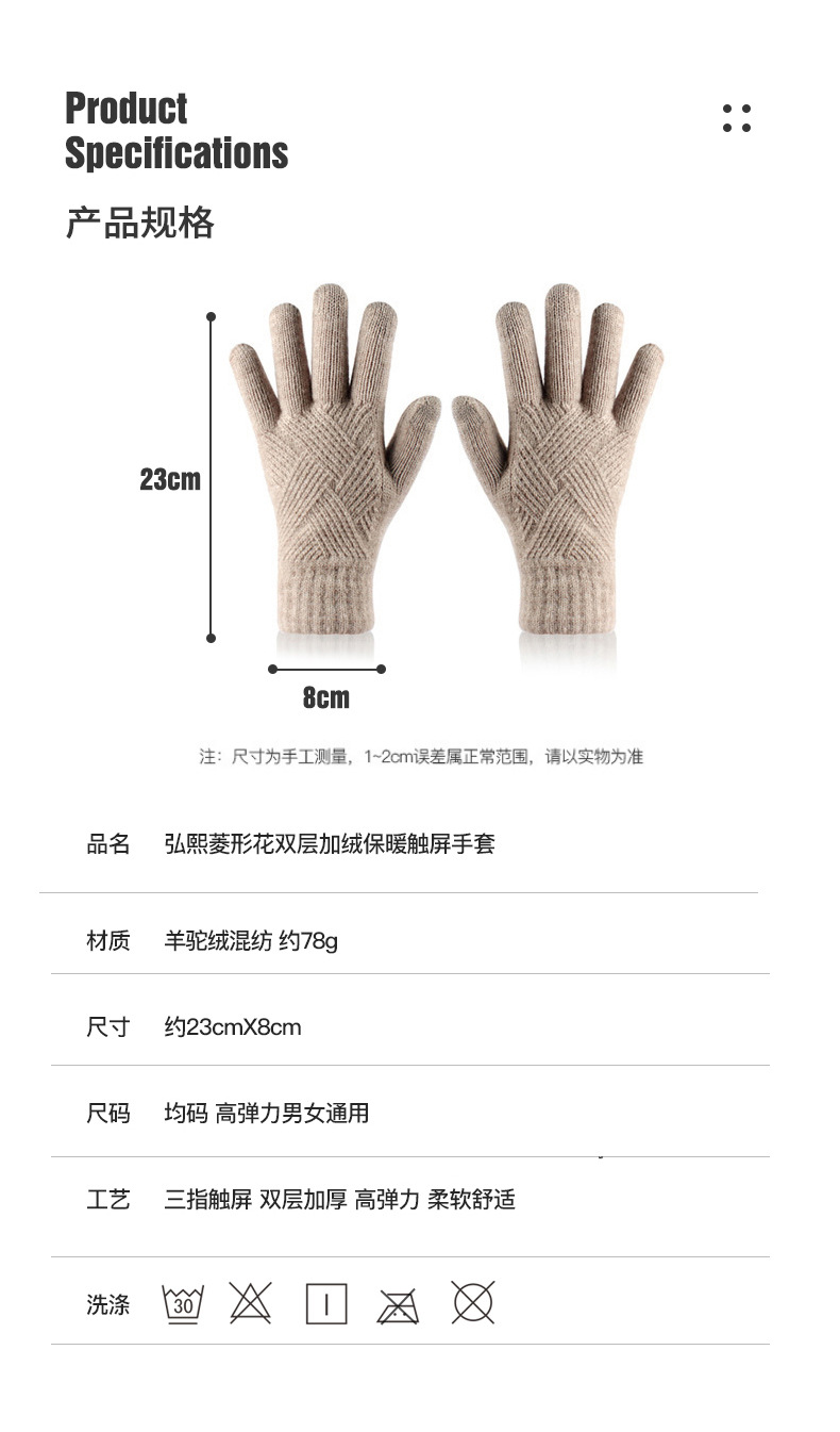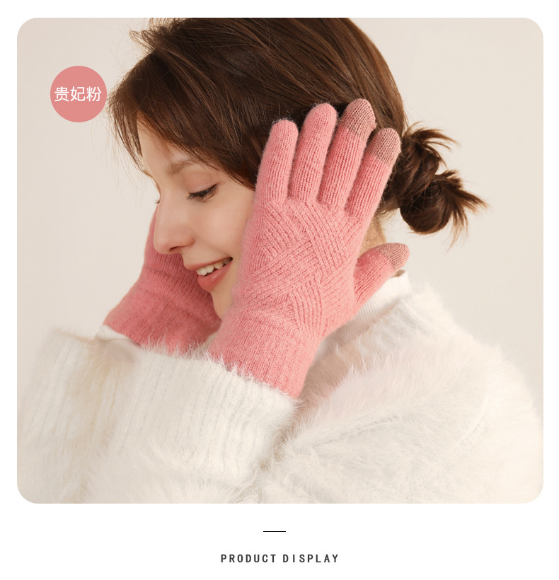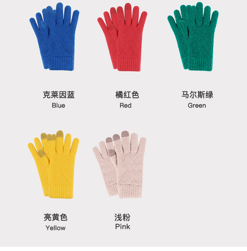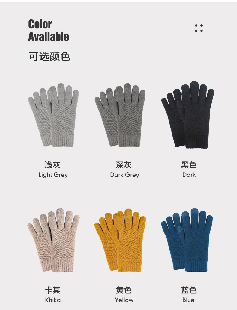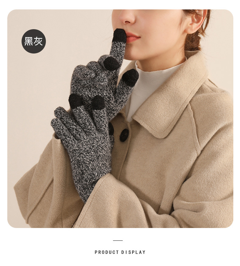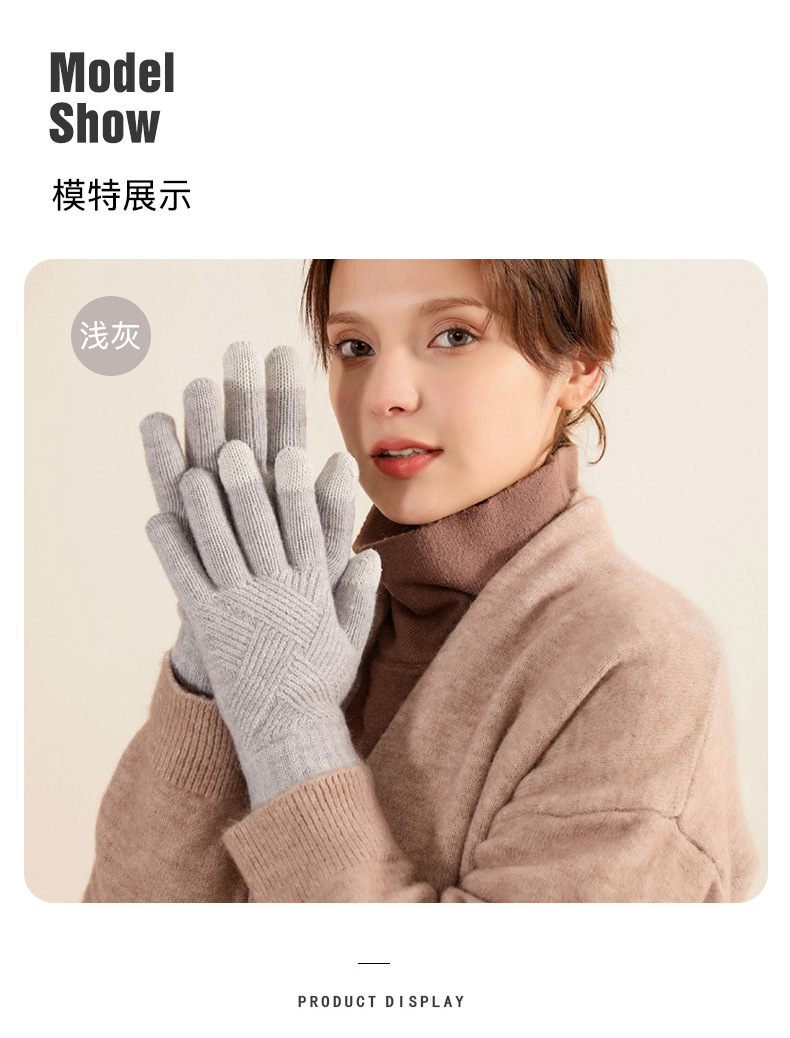 国境を越えた人気の女性用冬用ニット手袋、二重層プラスベルベットと厚みのあるタッチスクリーン手袋、男性用サイクリング防寒暖かい手袋