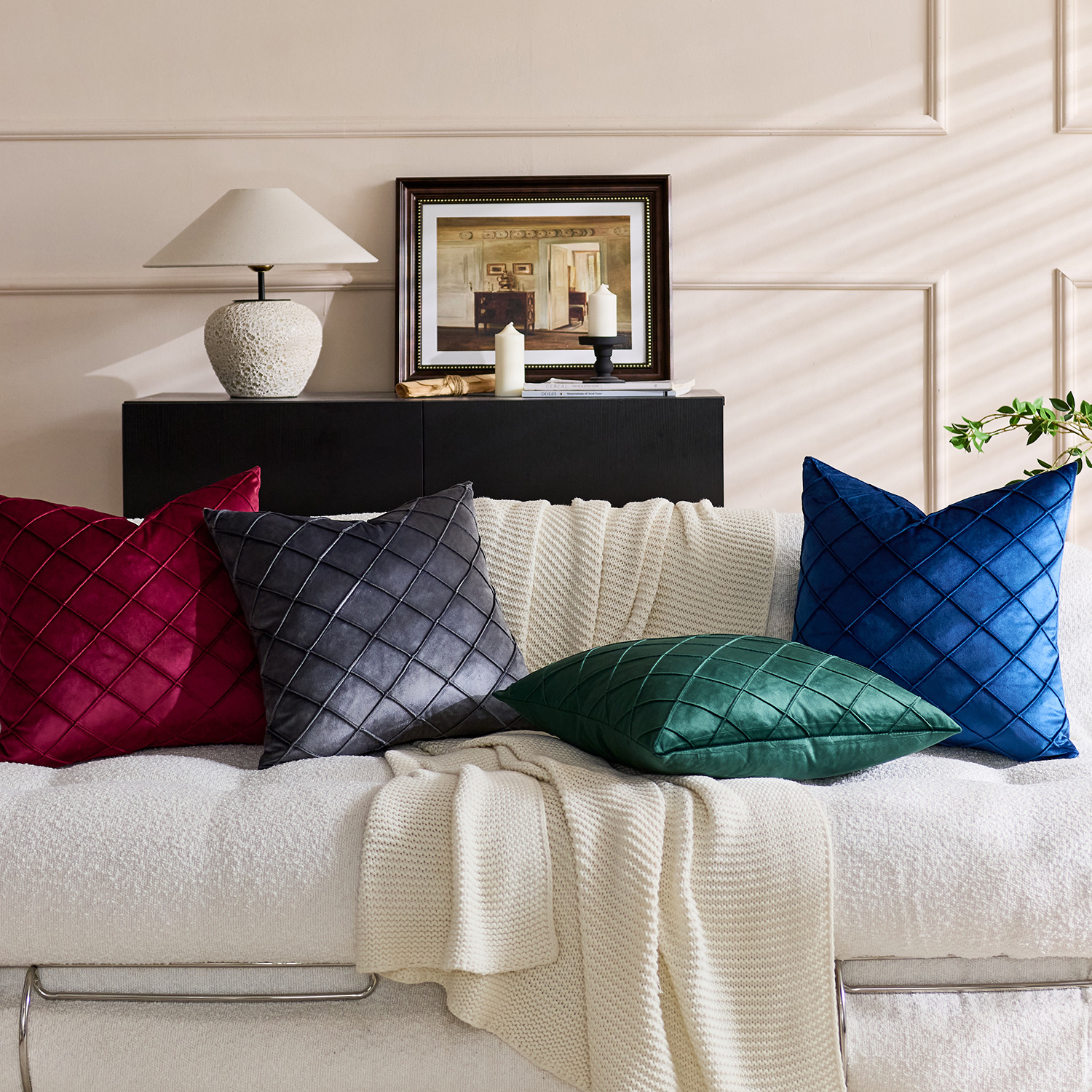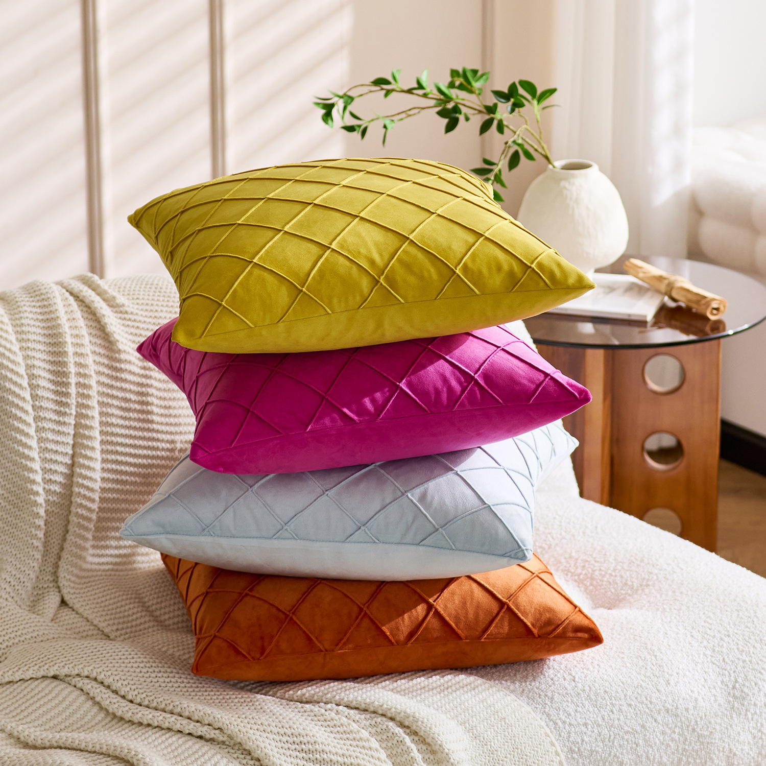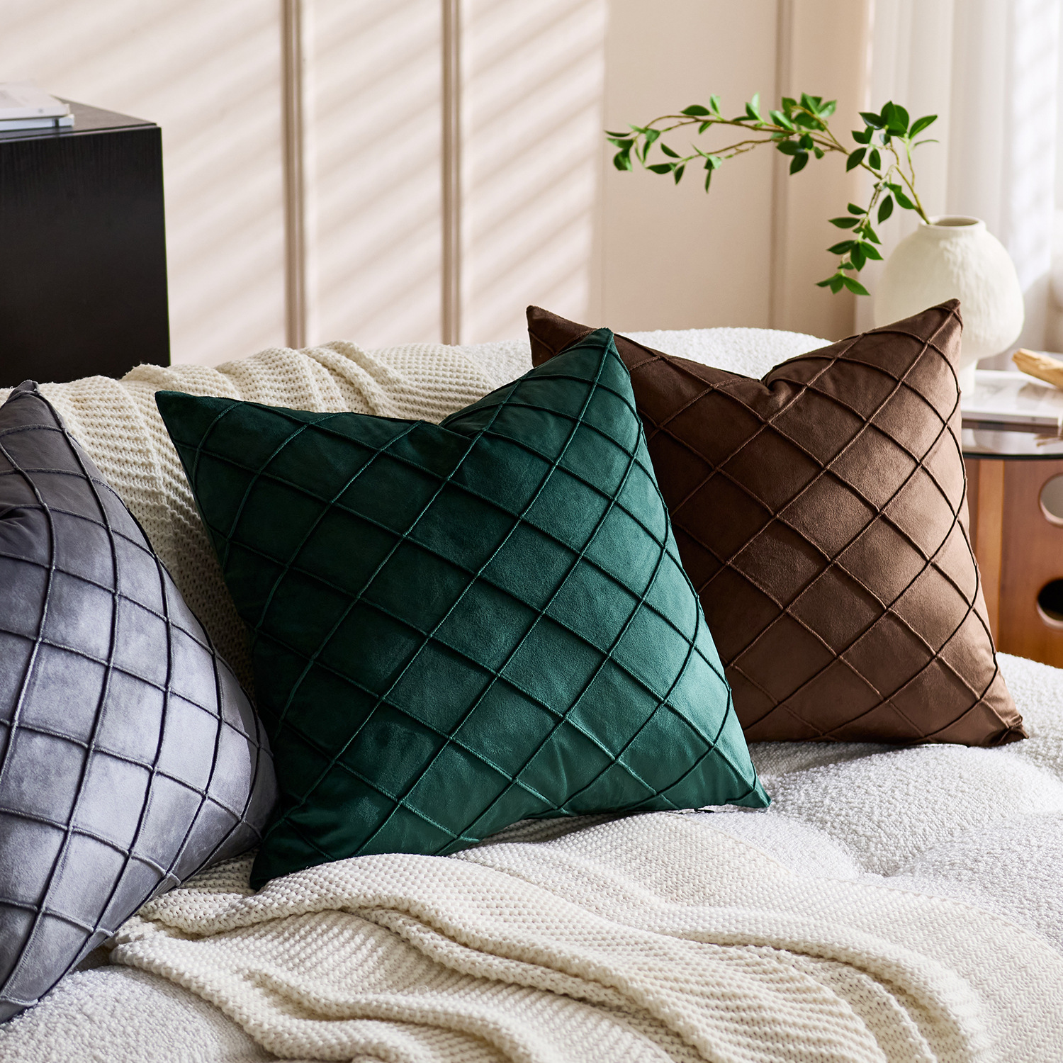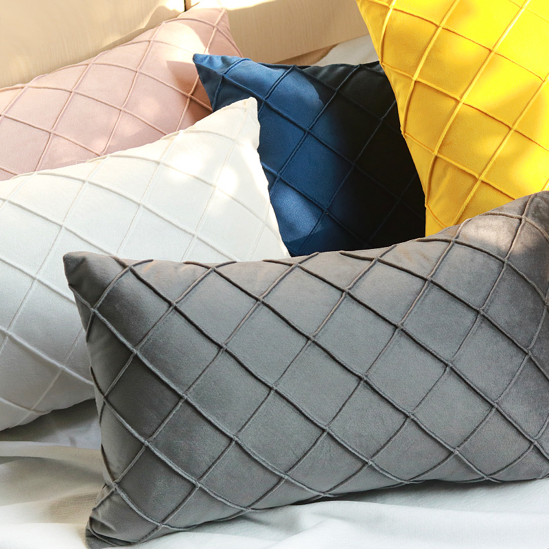 国境を越えた北欧の純色ビロード刺繍の方格子抱き枕カバー