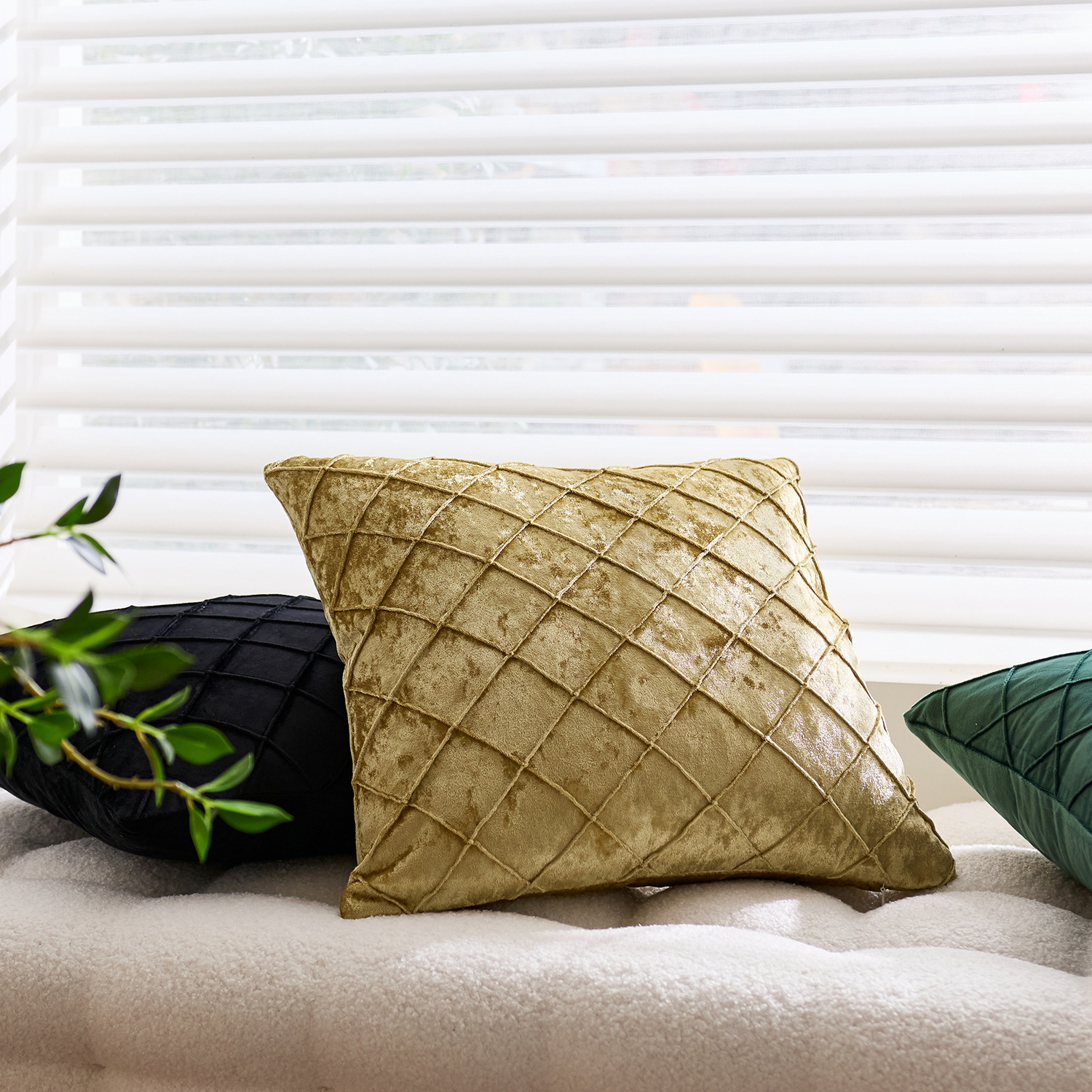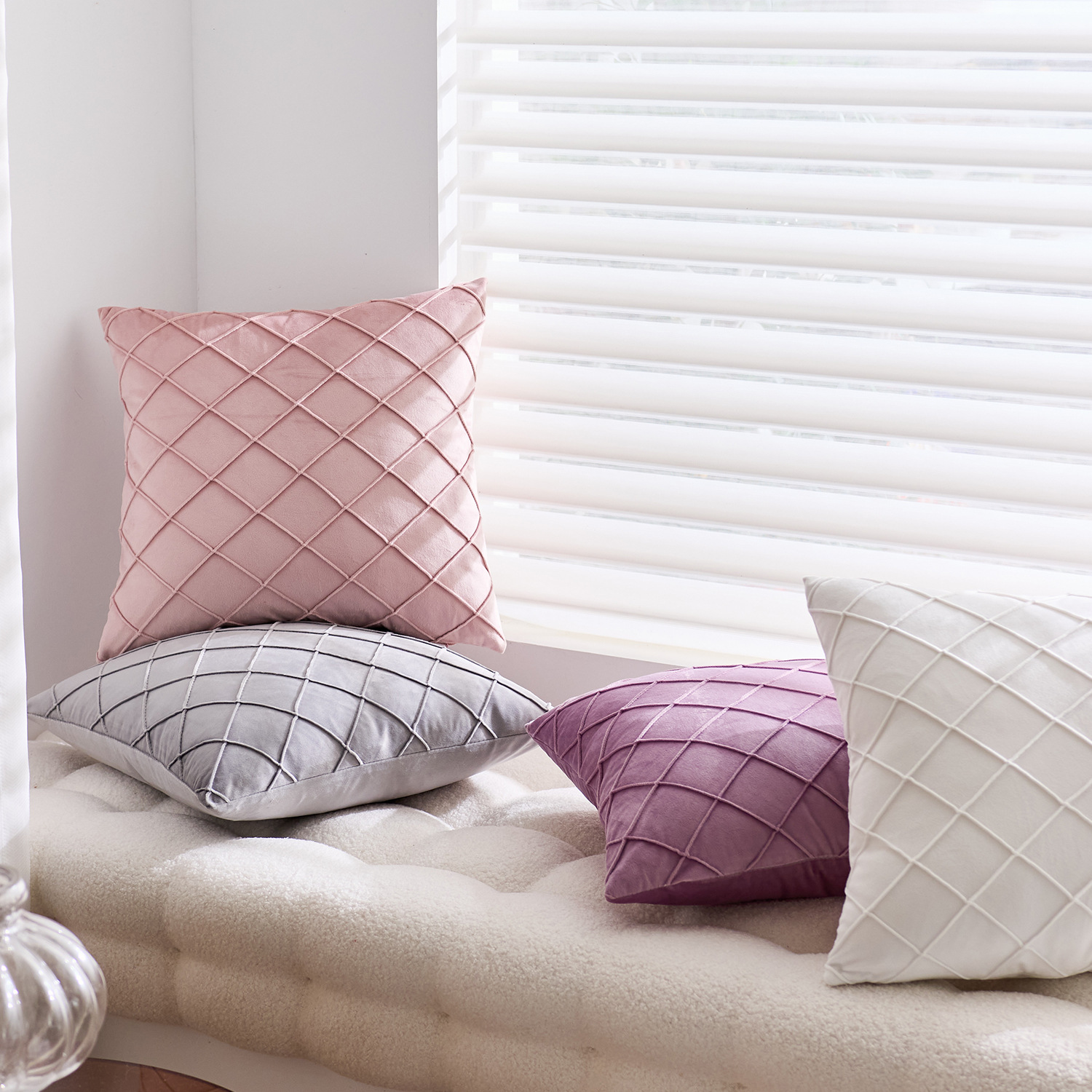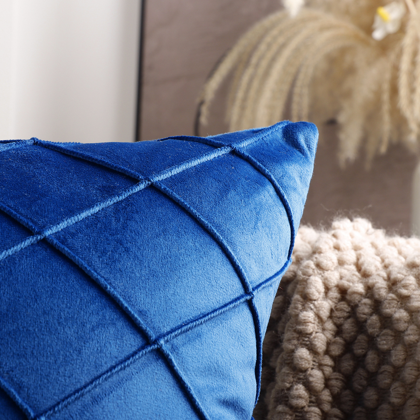 国境を越えた北欧の純色ビロード刺繍の方格子抱き枕カバー