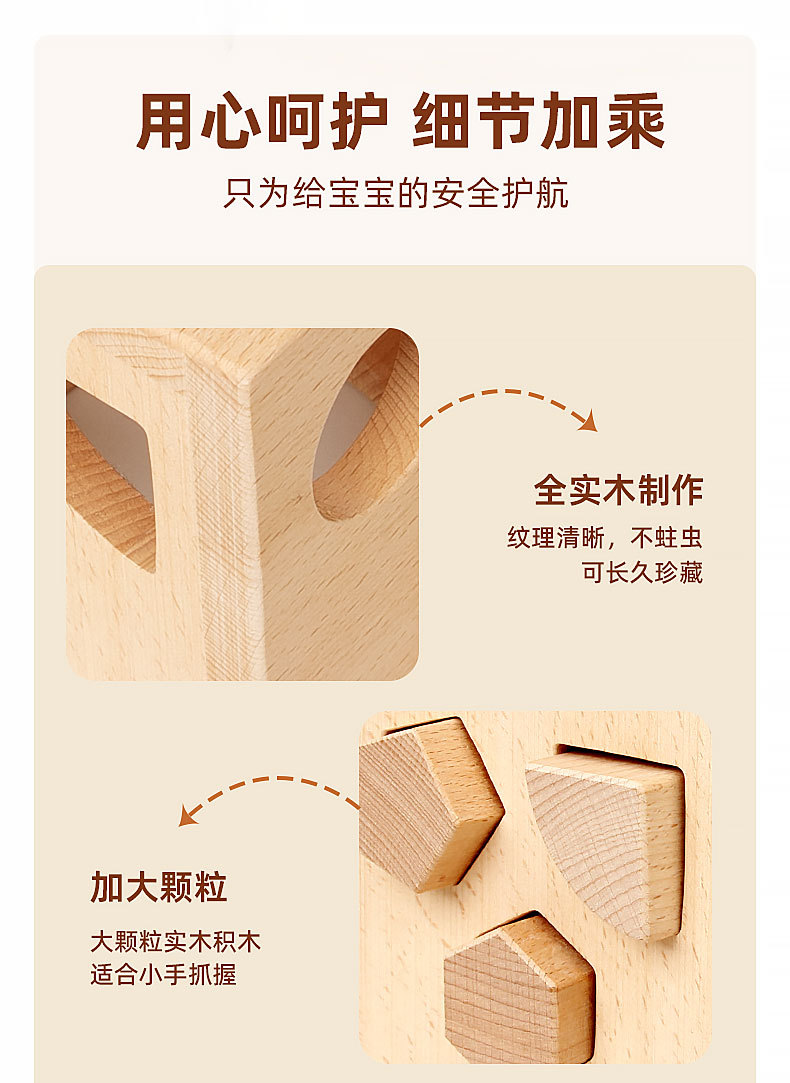 実木原色無漆ケヤキ形状認知ペア早教益智1-2-3早教乳幼児玩具啓蒙