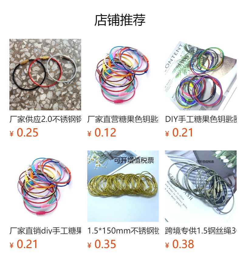 メーカー直販キャンディーカラーキーホルダーカラーペイント亜鉛メッキワイヤーロープタグバッグ漫画キーストラップ