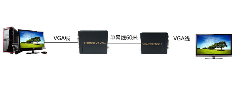 Use instructions: 1, VGA interface, through the network cable to extend the display device