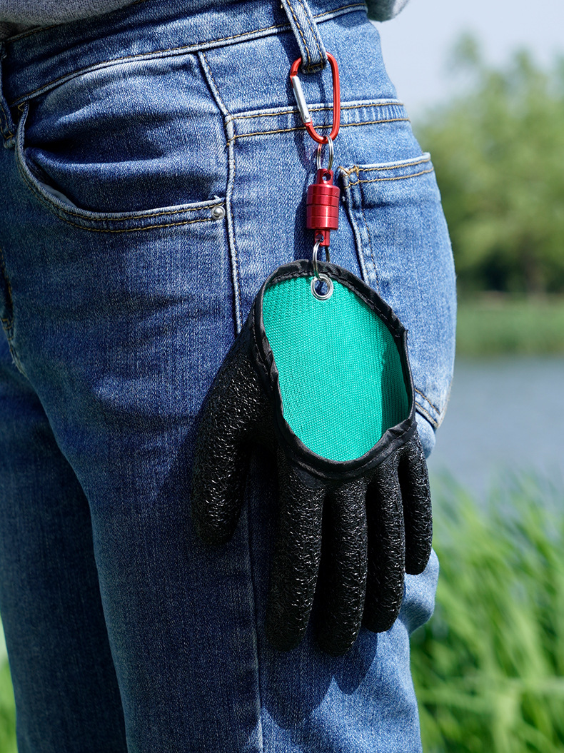 Huansheng 滑り止め魚捕りラテックス手袋、耐穿刺、耐切創、耐穿刺、防水編組釣り手袋、釣具用品