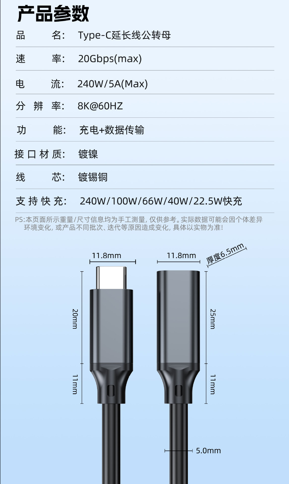 type-c延長ケーブル オス-メス 20Gbpsアダプタケーブル USB3.2データケーブル 8Kスクリーン投影ケーブル 拡張ハードディスクケーブル