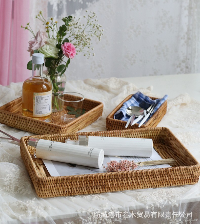 純粋に手作りの卸売ベトナム秋籐織キャンディーフルーツスナックドライフルーツ収納トレイ多機能収納ボックス