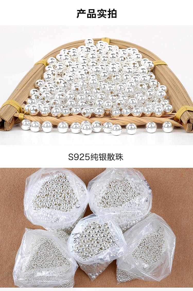 925純銀銀珠散珠輸送珠子純銀路通隔珠diy玉銀豆小物部品子