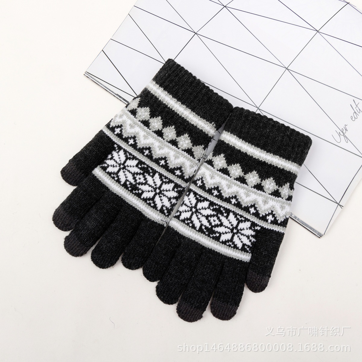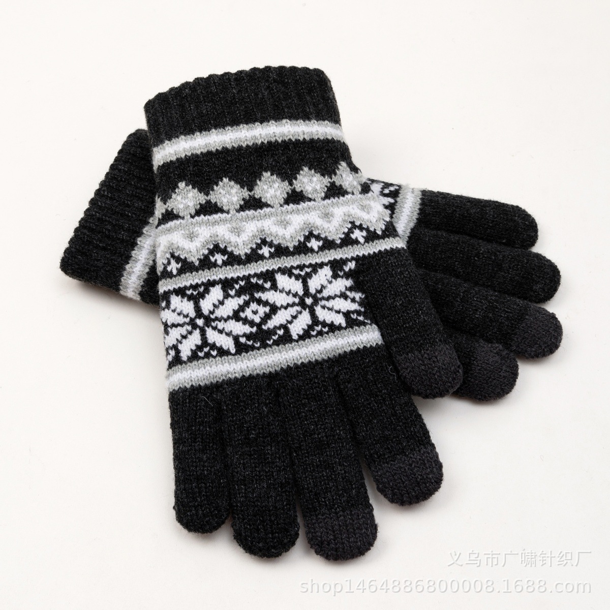 クロスボーダー定番メンズサイクリングアウトドア防寒保温ダブル八角ウールタッチスクリーンジャカードニットグローブ