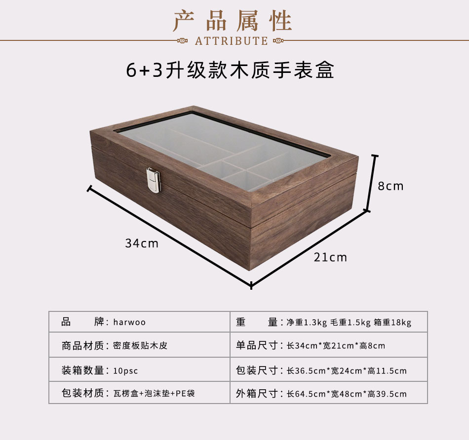 6 3単層黒胡桃木皮腕時計眼鏡ケース