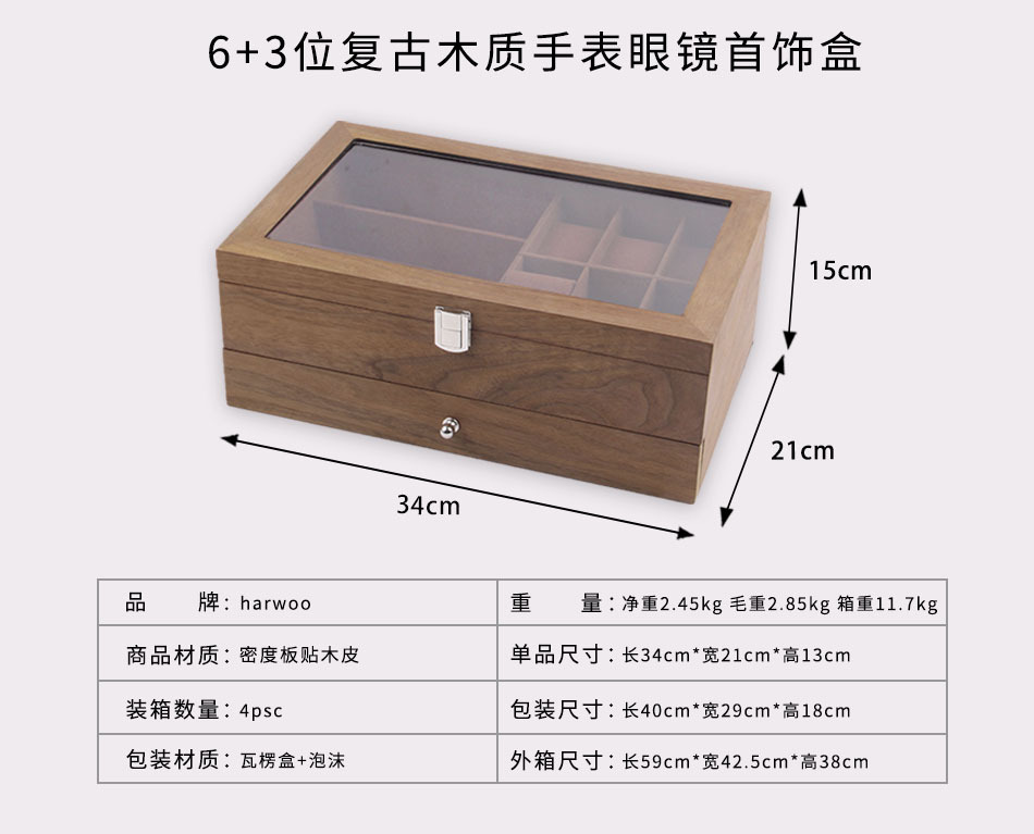 6 3ダブル黒くるみ木革腕时计メガネケース