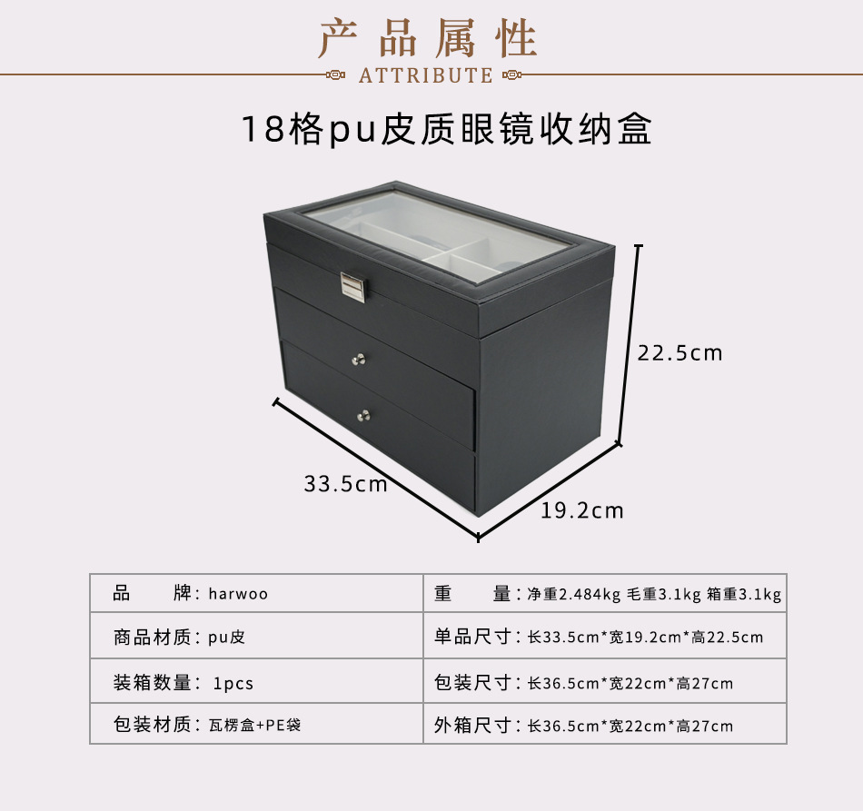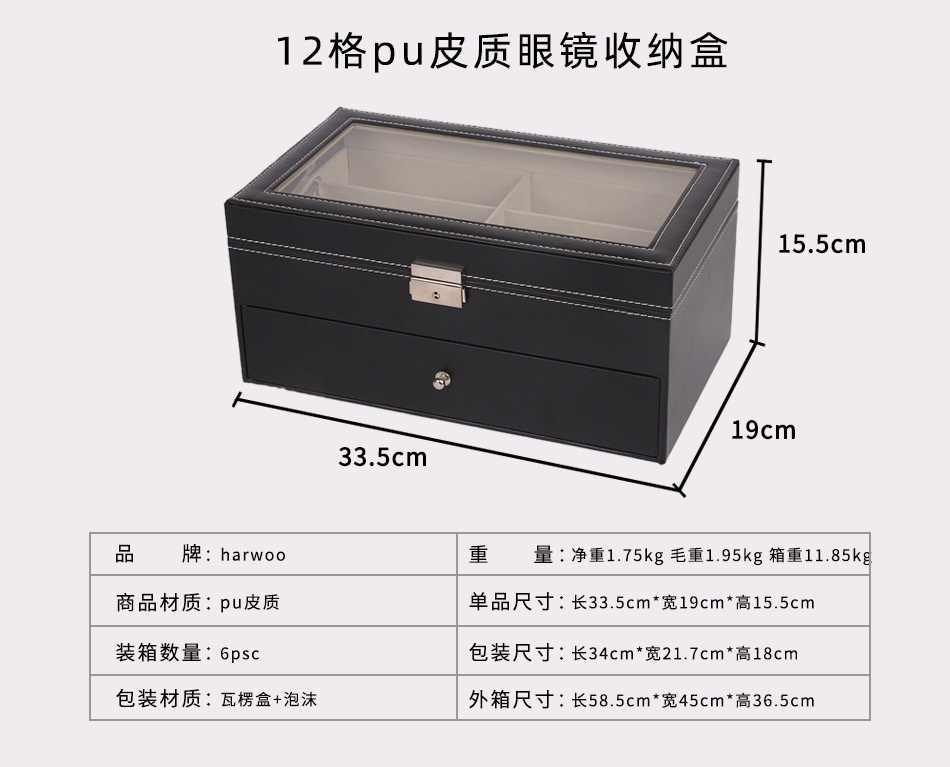 18コンパートメントブラックレザーメガネ収納ボックス