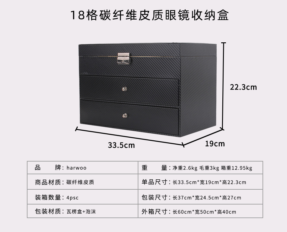 18格炭素繊維皮質眼鏡収納ケース