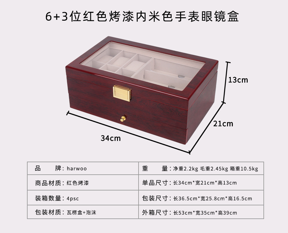 6 3ダブル赤色塗装腕時計眼鏡収納ケース