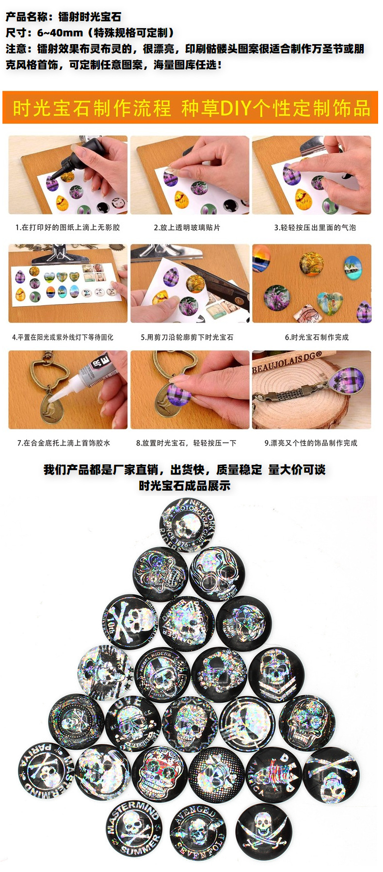 時間宝石光沢のあるガラスパッチリングフェイスイヤリングキーホルダー diy ジュエリーアクセサリー