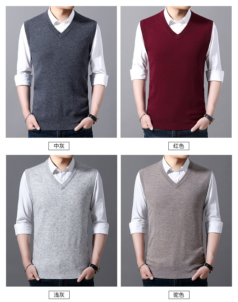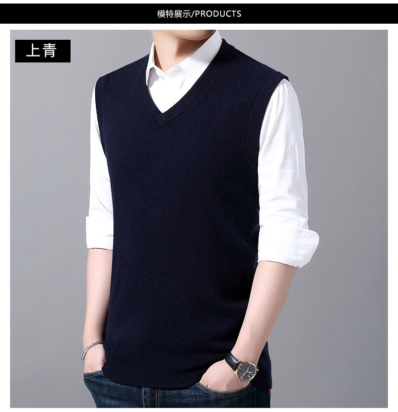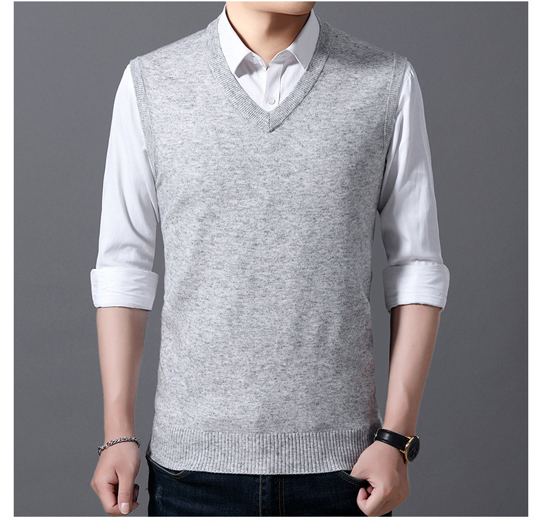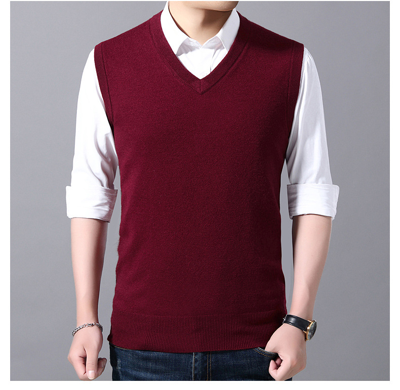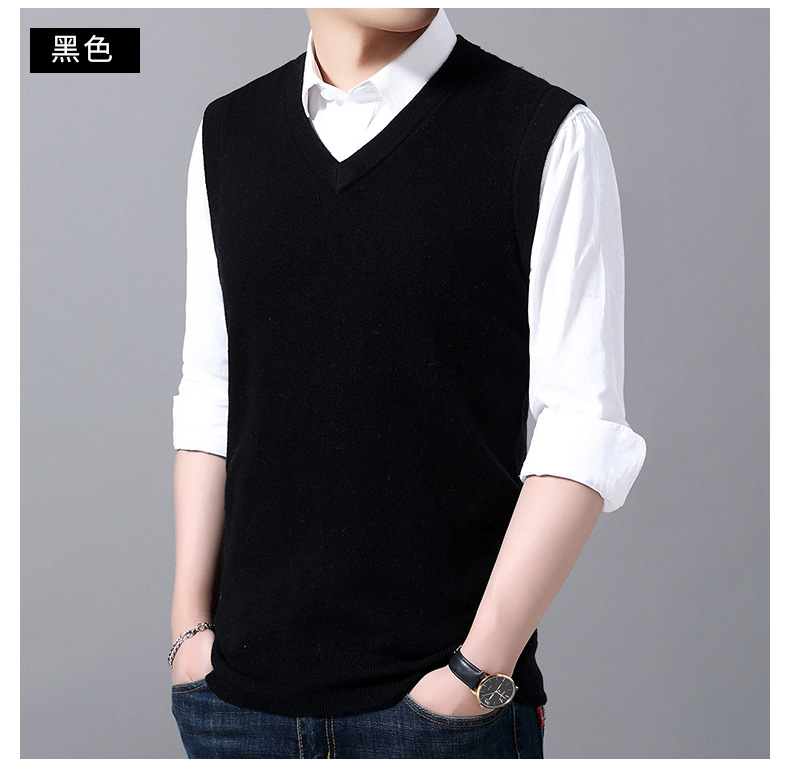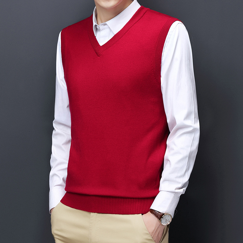 2022秋冬純色男性ベスト中青年vネック袖なし襟ニットカジュアルベスト