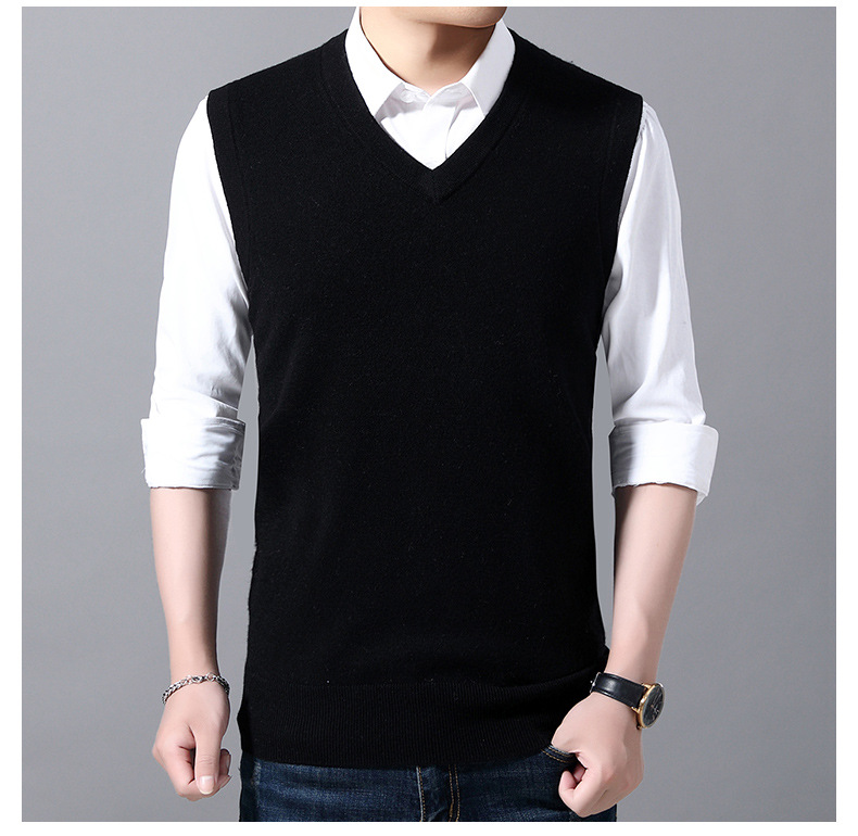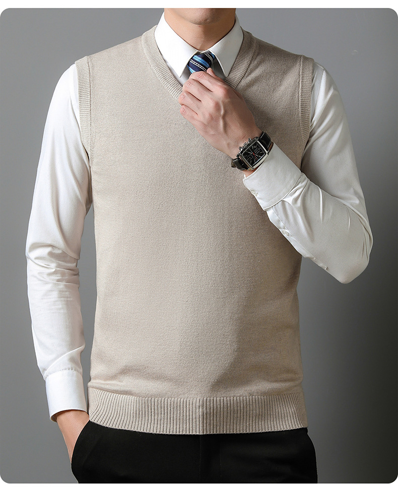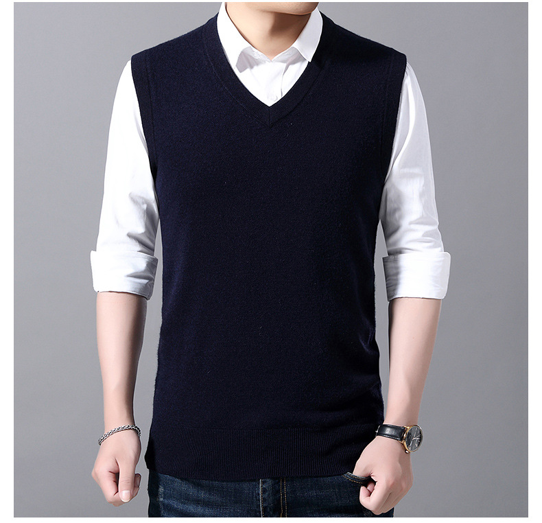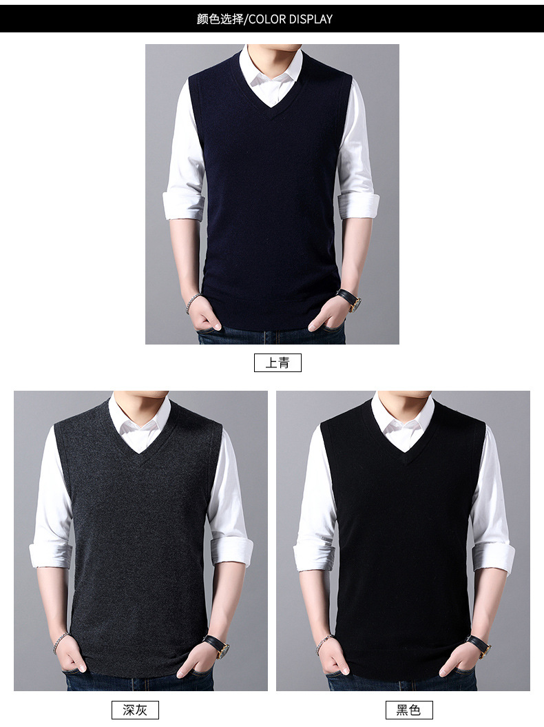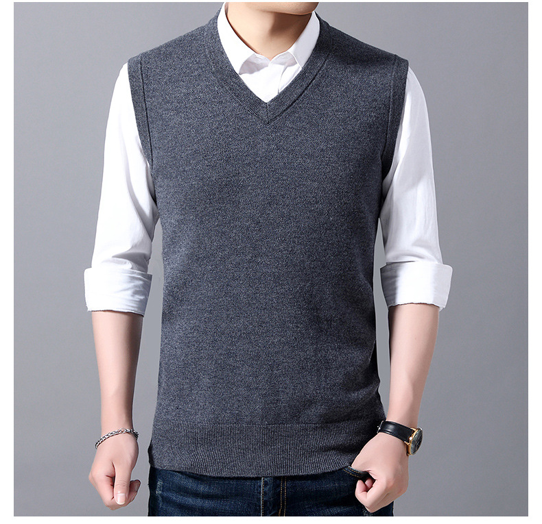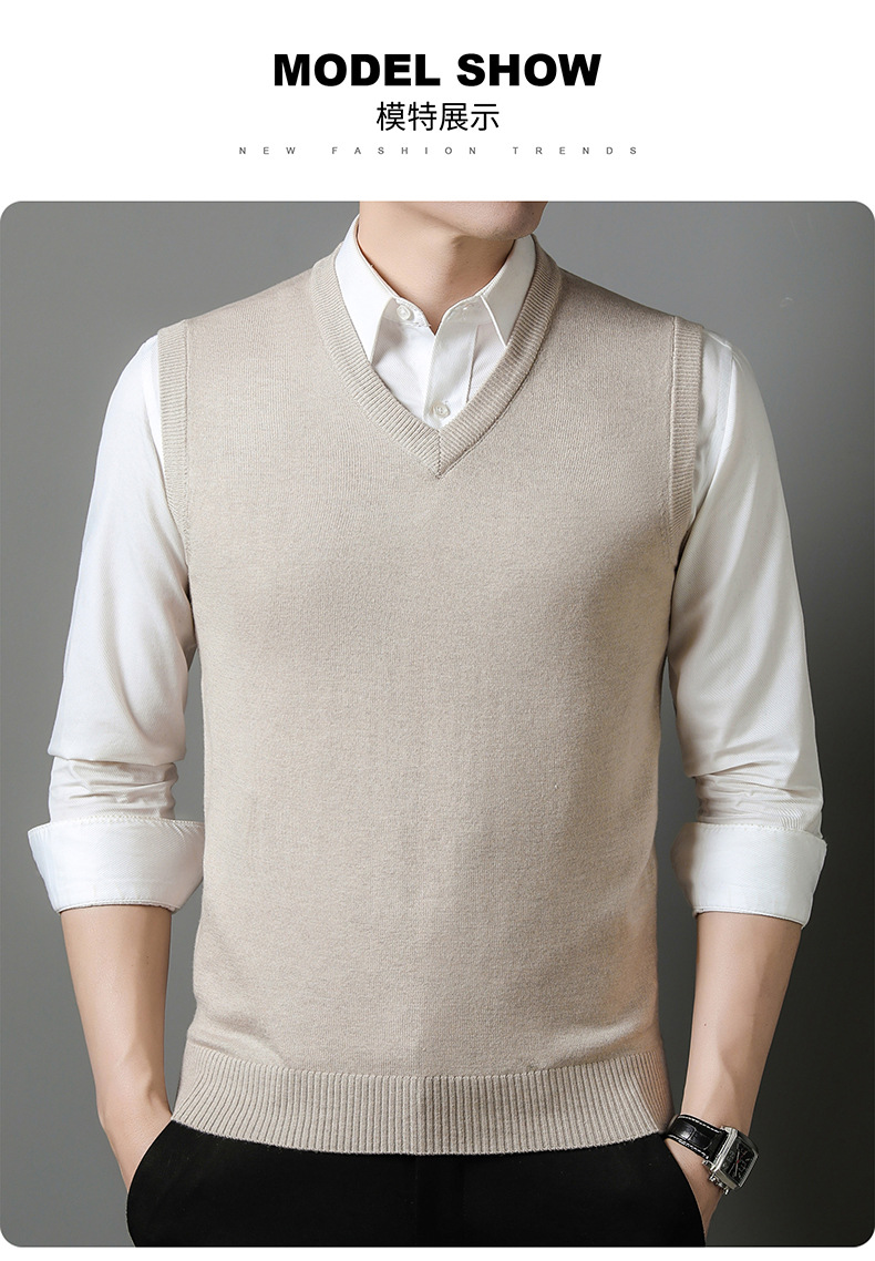 2022秋冬純色男性ベスト中青年vネック袖なし襟ニットカジュアルベスト