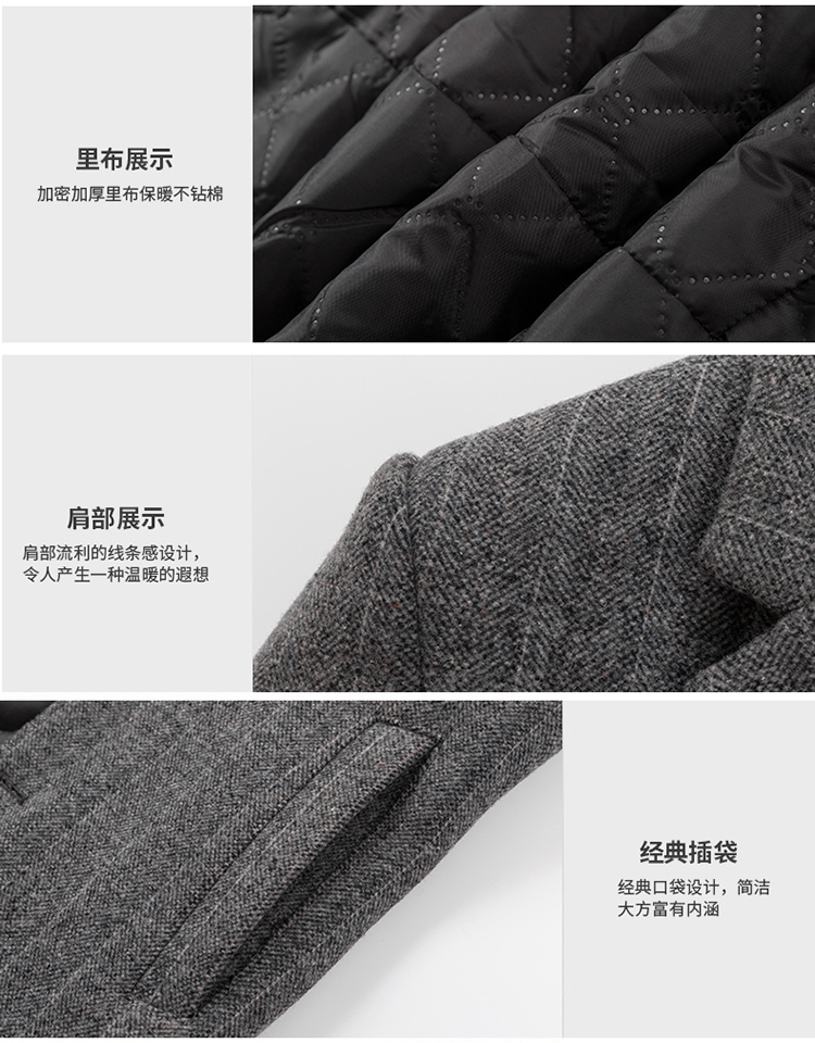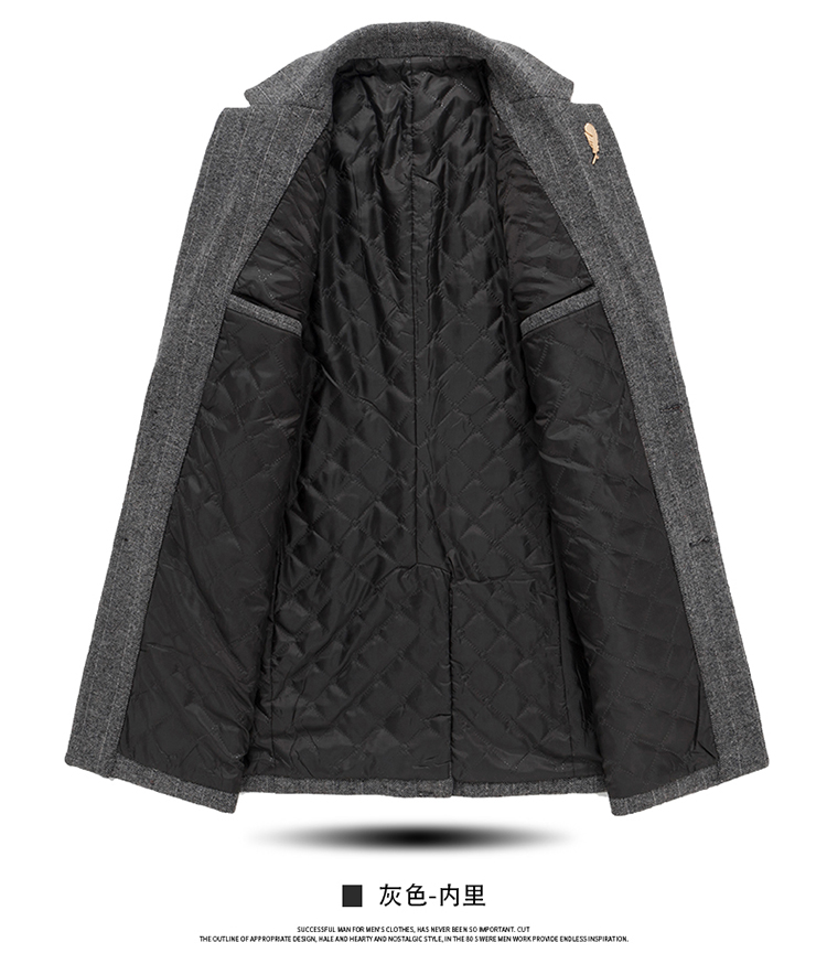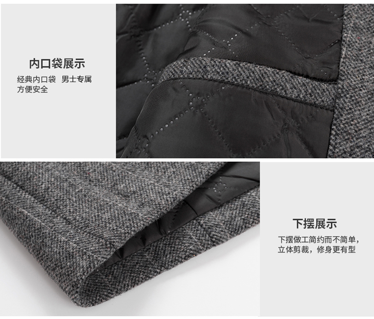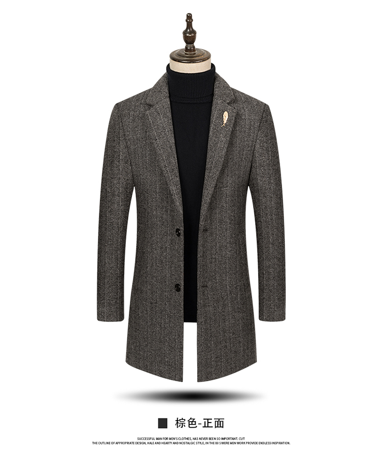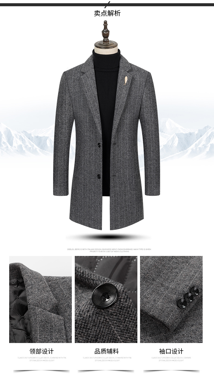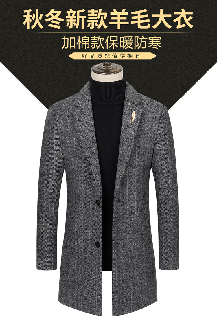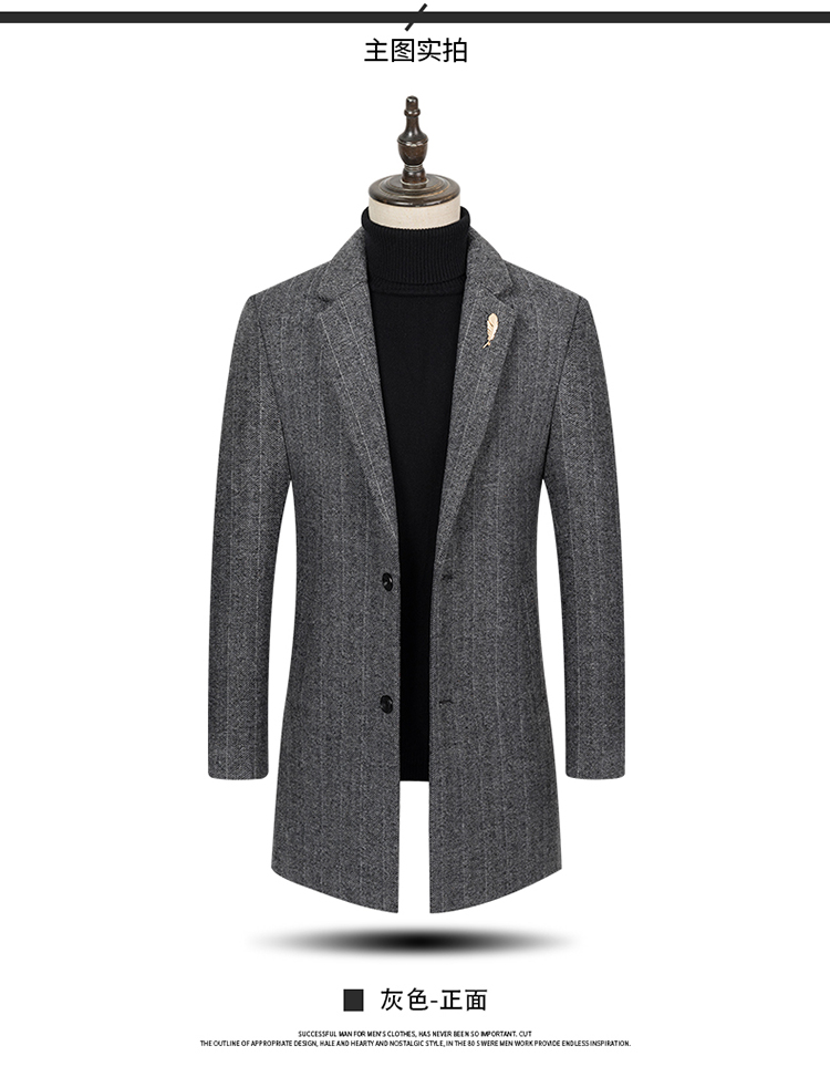 秋冬の男性の毛はコートの襟の中の長いストライプの毛です。コートはウールのコートを修理します。