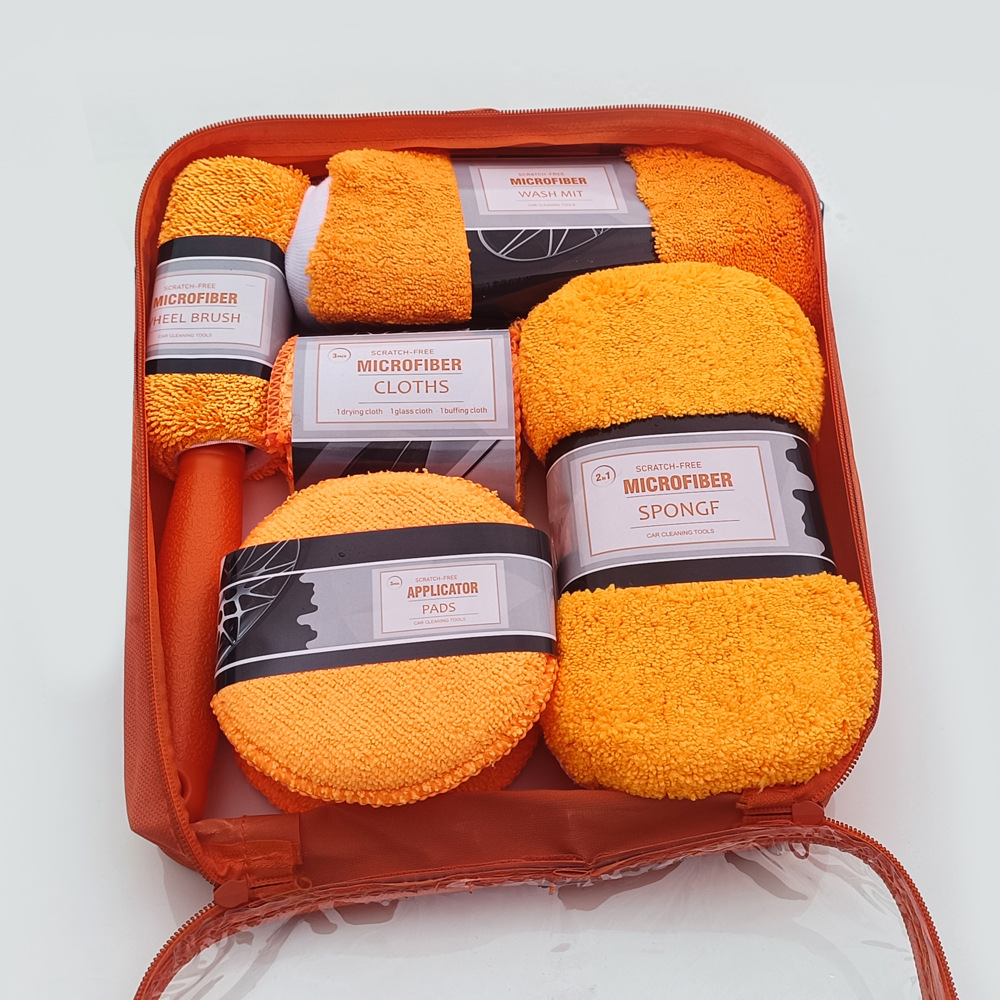 自動車清掃用品プレゼント9点セット洗車9点セット洗車タオルスポンジワックス餅ハブブラシ