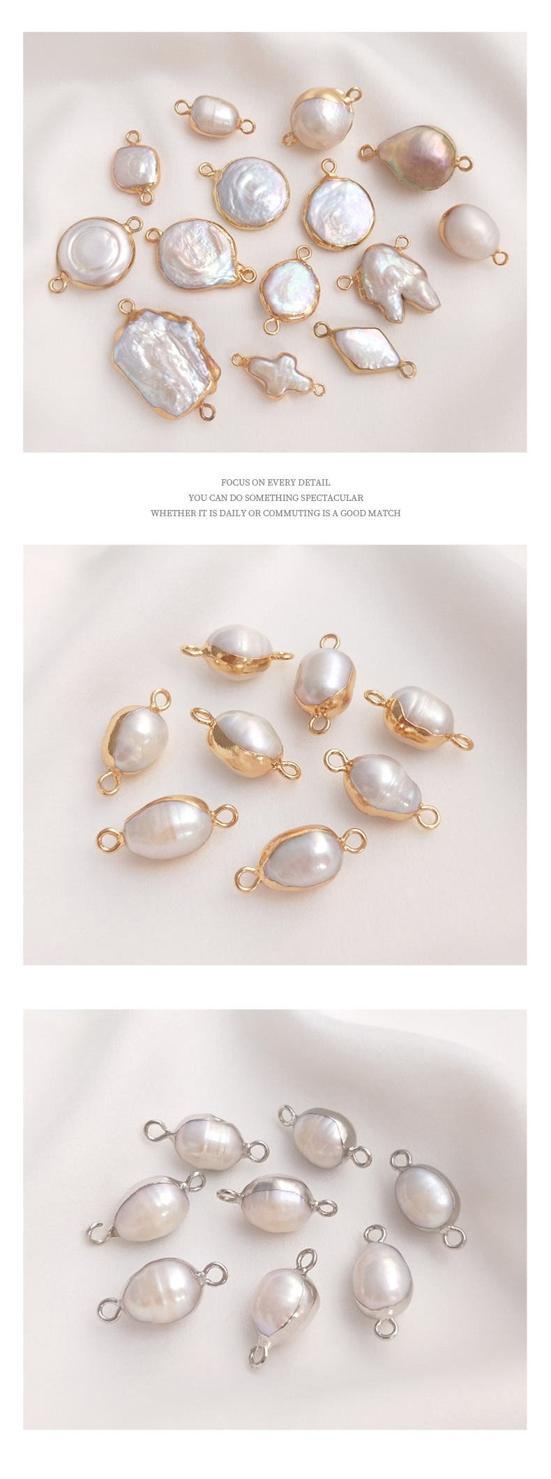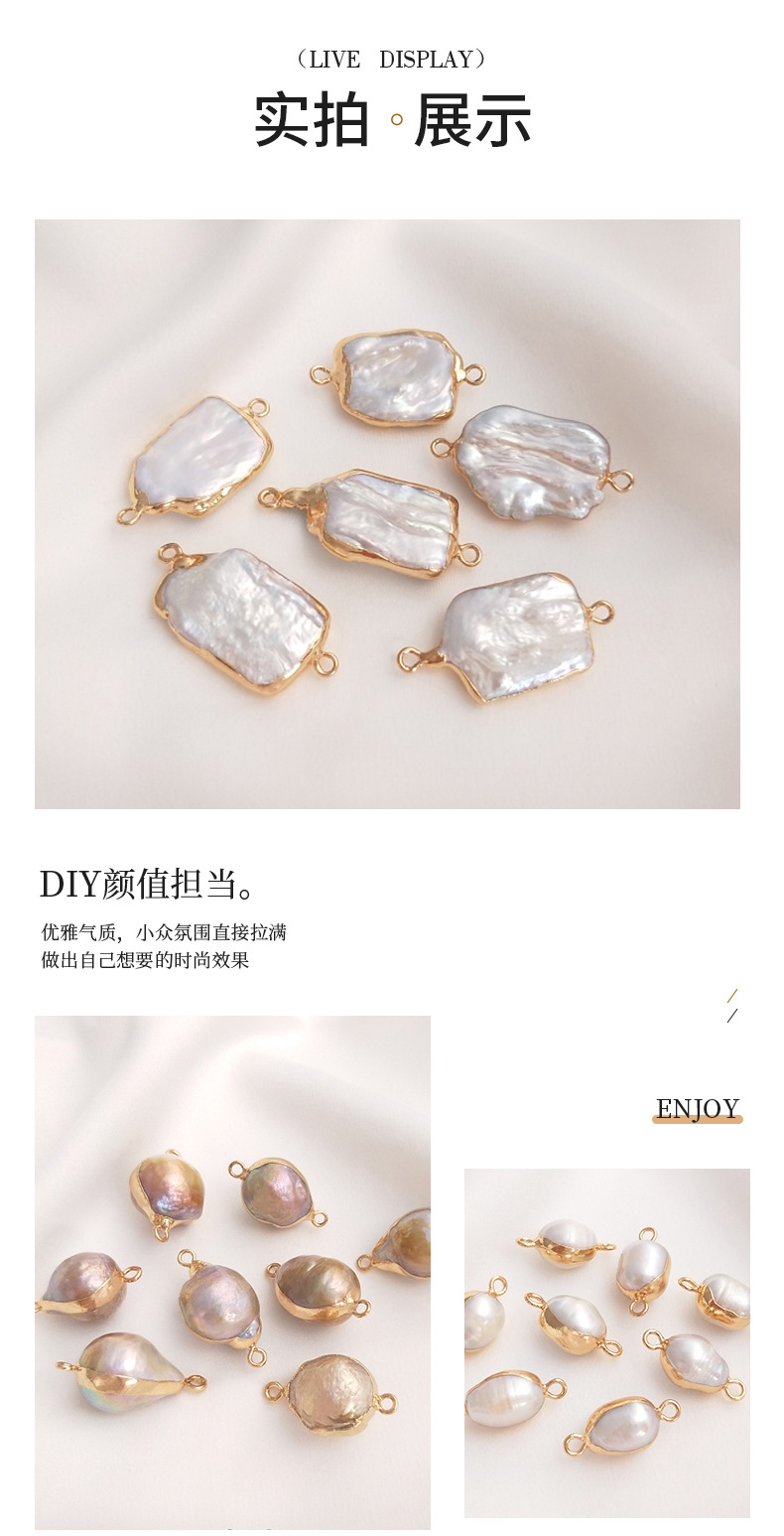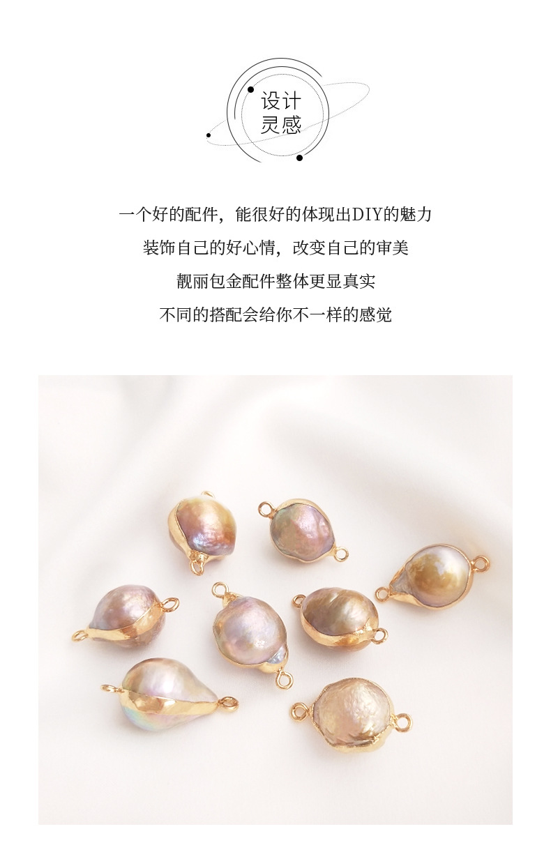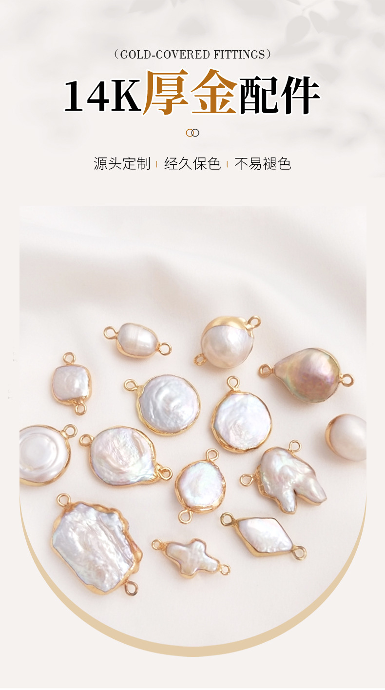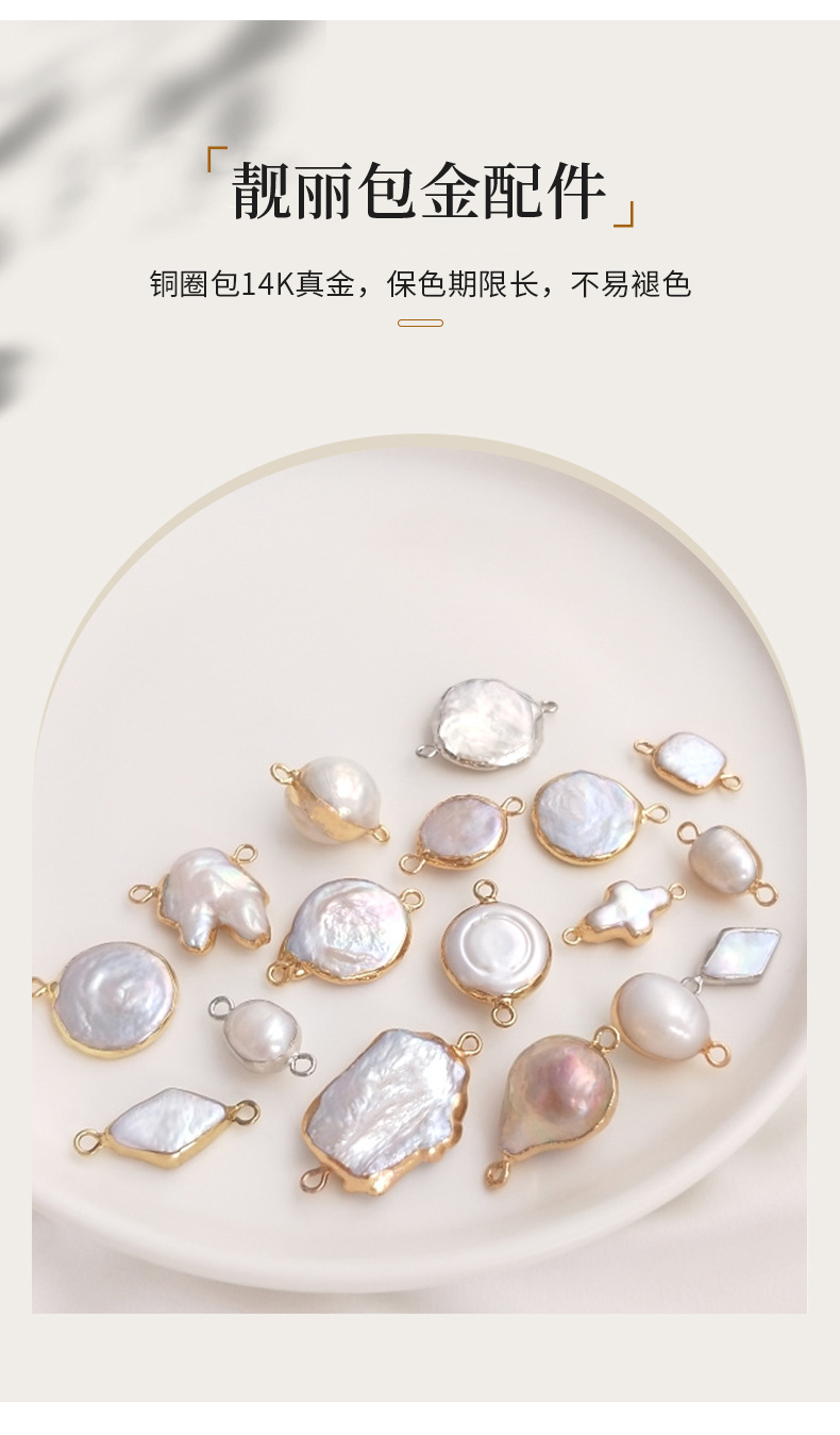 天然バロック異形真珠双穴ペンダントシングル吊り飾り米珠平円形手作りdiy縁取り部品