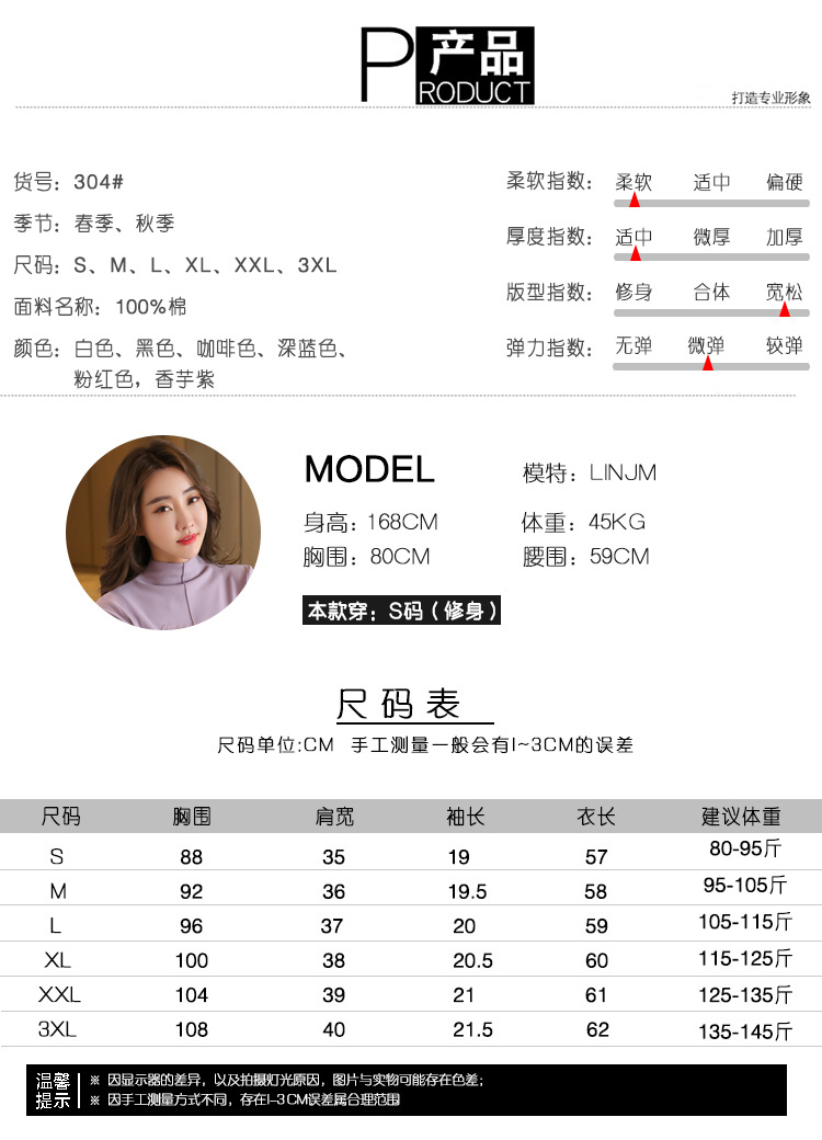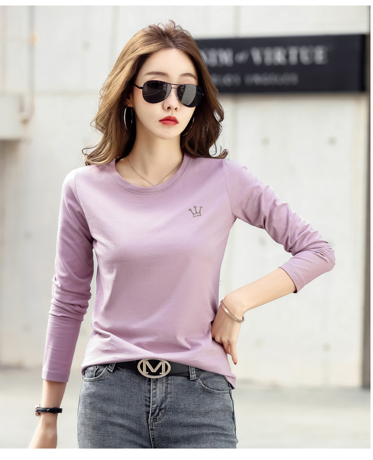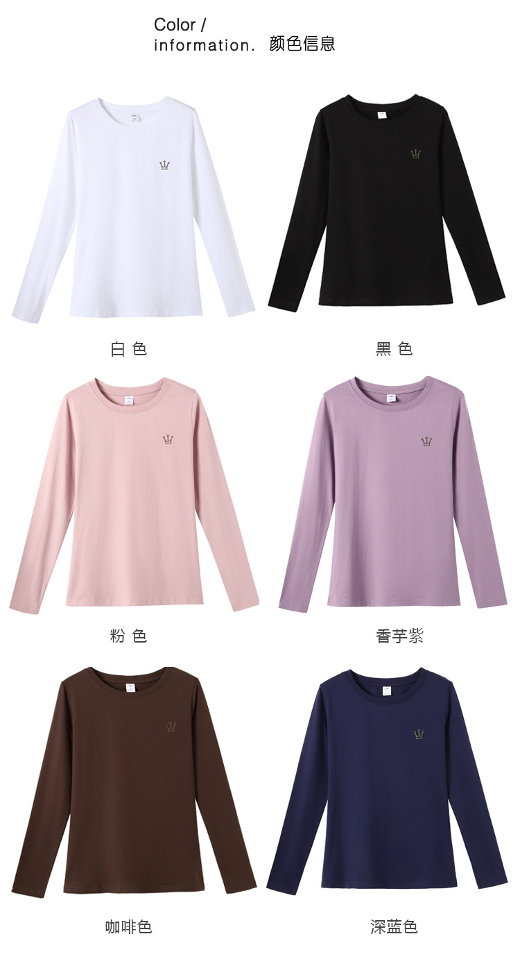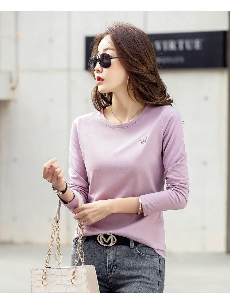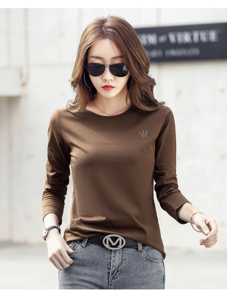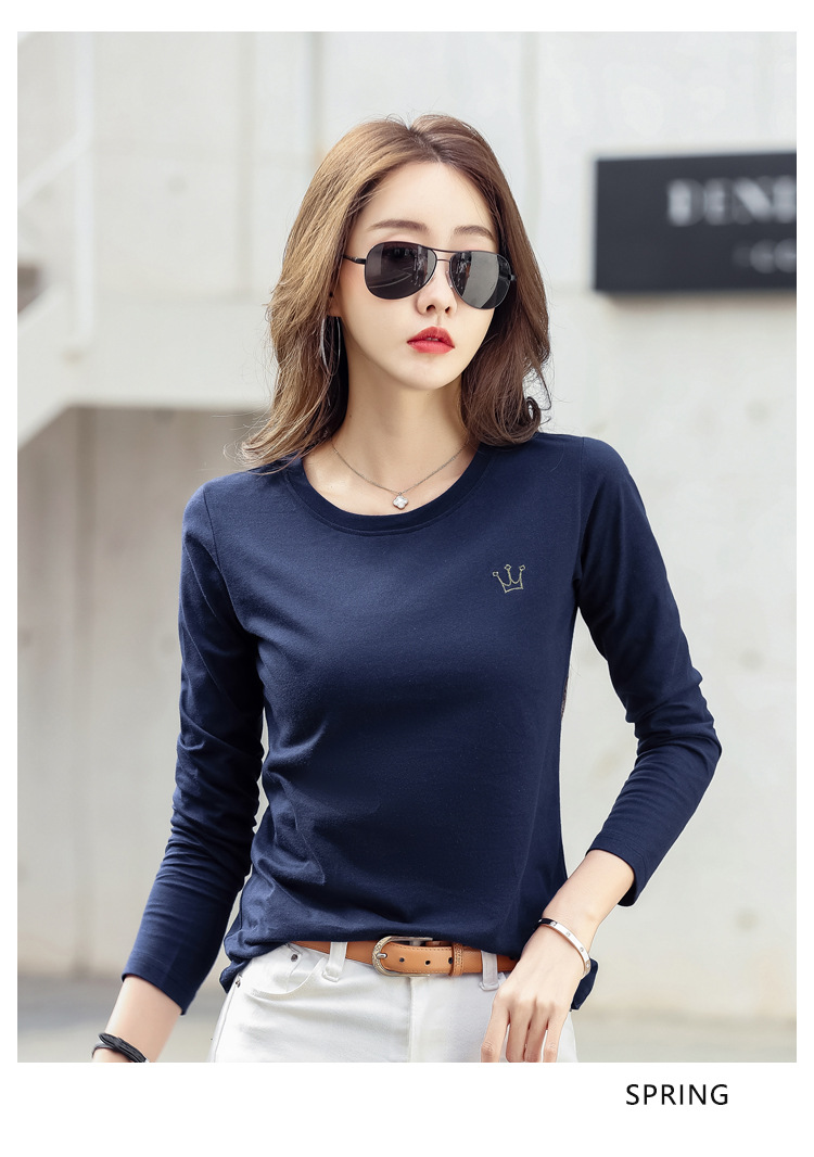 304秋冬無地刺繍クラウンボトムシャツコットンインレディースTシャツ、ネットセレブ、スリムフィット、長袖、通勤、痩身