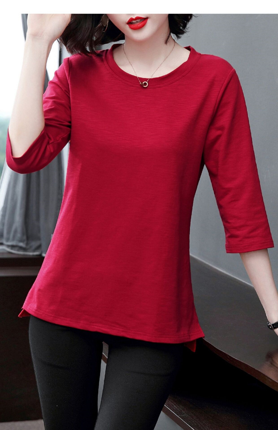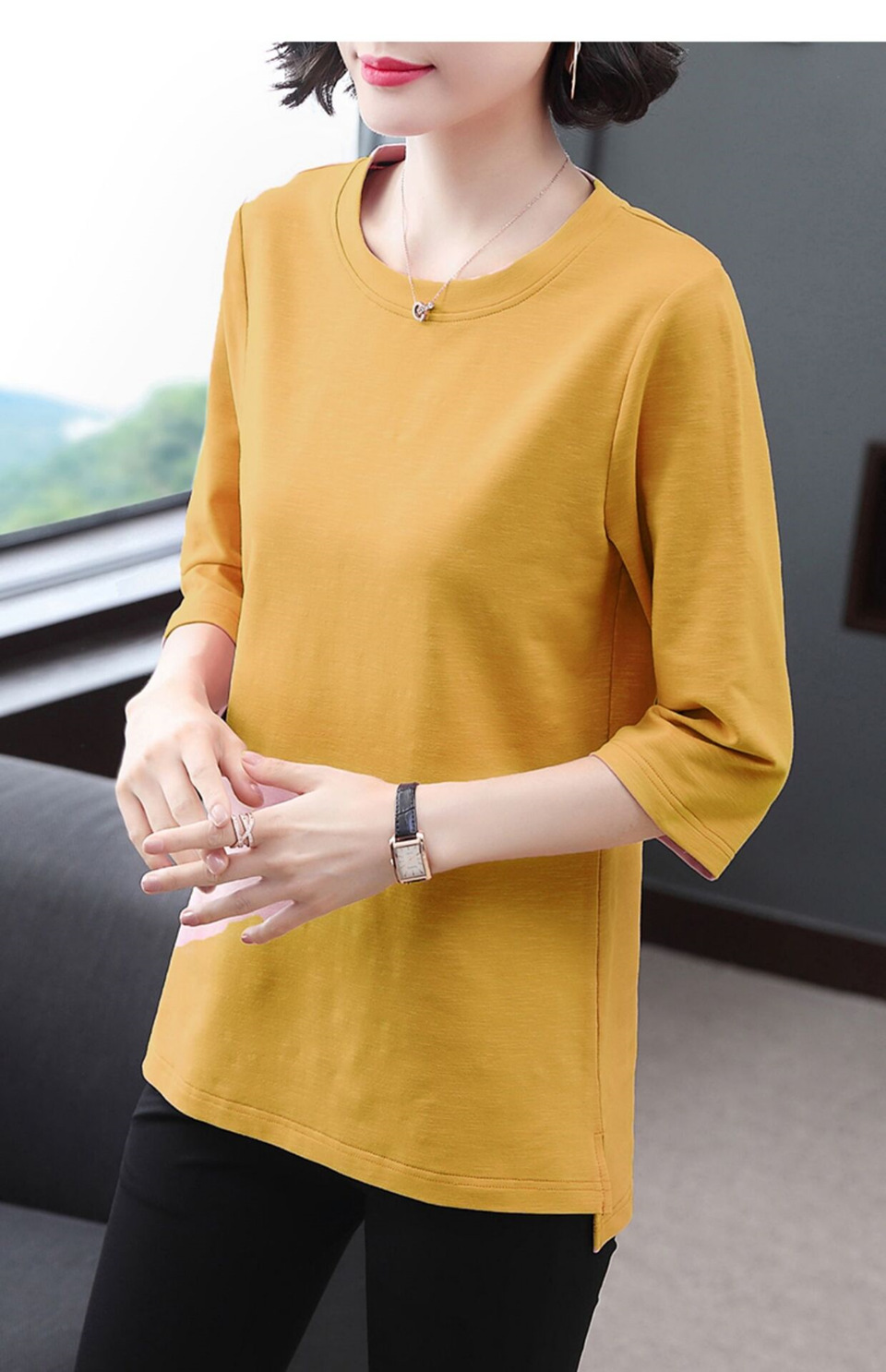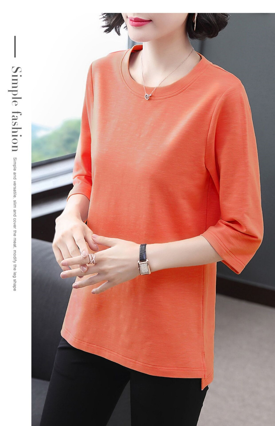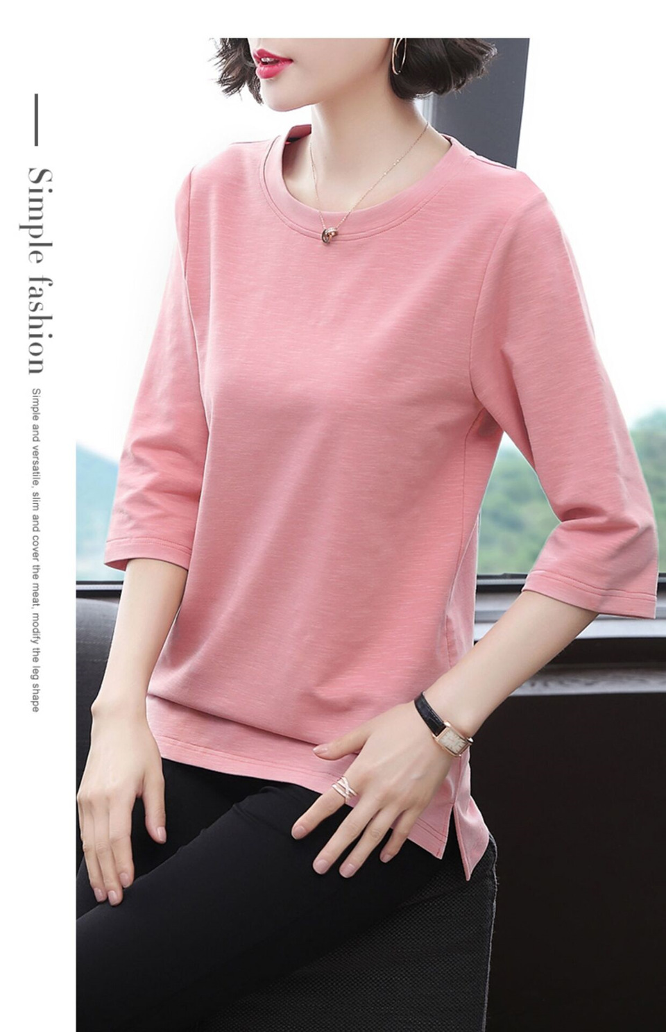 春夏服韓国版新型半袖tシャツ女性七分袖上着ボトムシャツ