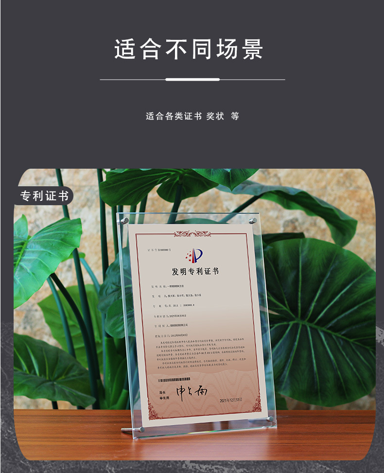 アクリルA4水晶証明書枠A5インチ賞状フォトフレーム置物a3営業許可証特許展示枠壁
