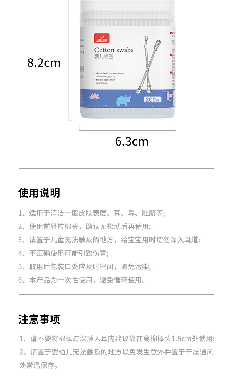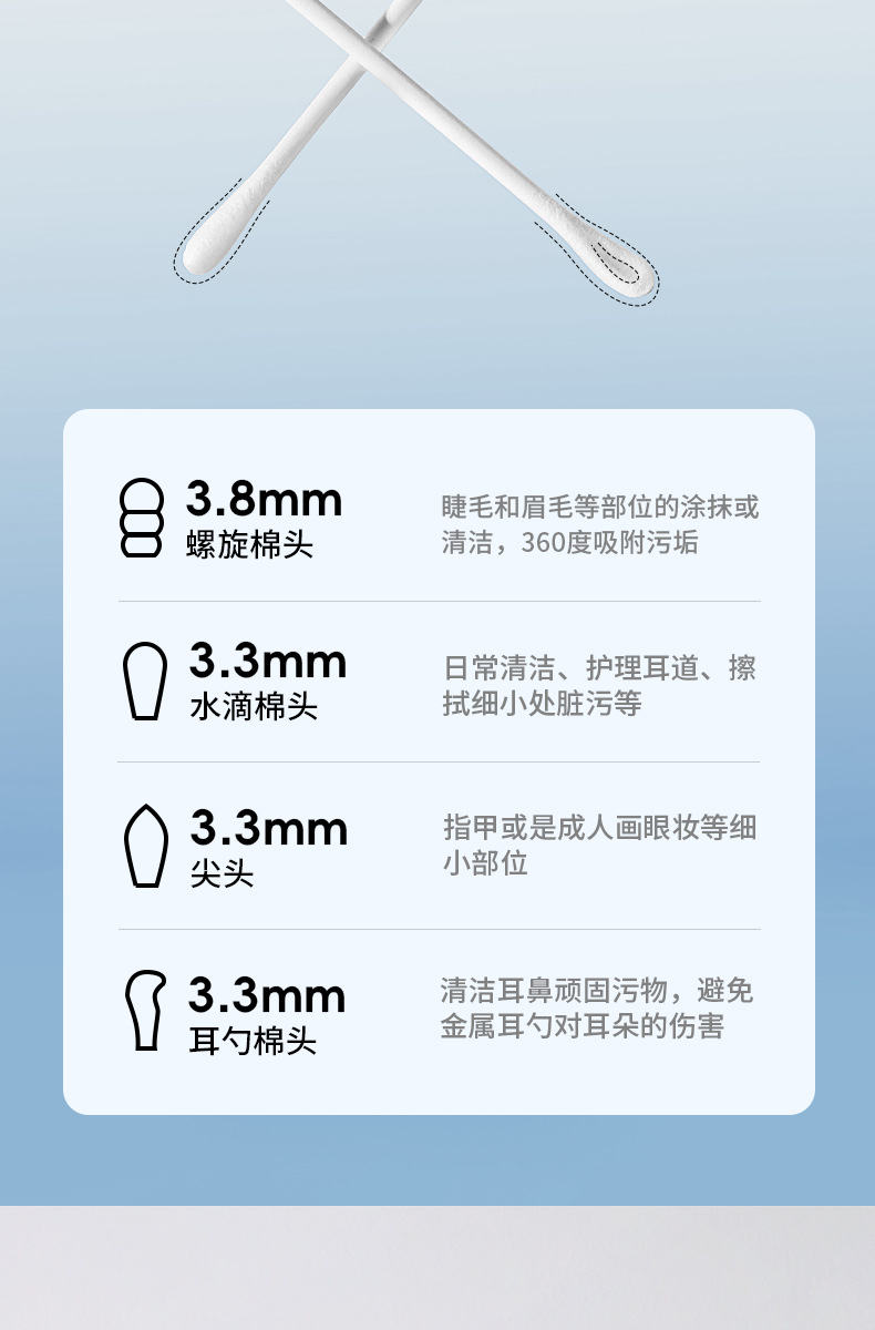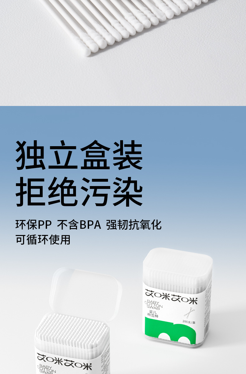 エイミー新入生の赤ちゃんの双頭綿棒子供の耳抜き綿棒の耳のスプーンの頭の赤ちゃんの純綿の小さい頭の綿棒