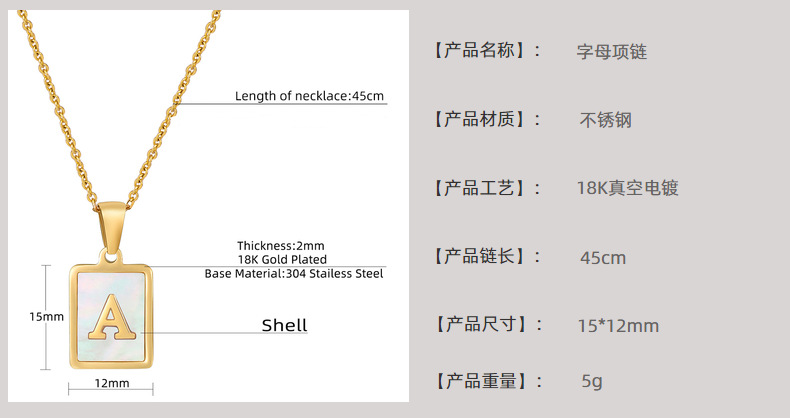 国境を越えたヨーロッパとアメリカのステンレス鋼三次元シェルレターネックレス女性のチタン鋼 26 文字ペンダント非退色ジュエリー卸売