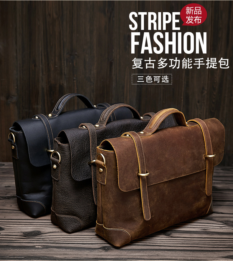 欧米のレトロな本革の男性はブリーフケースを持っています。