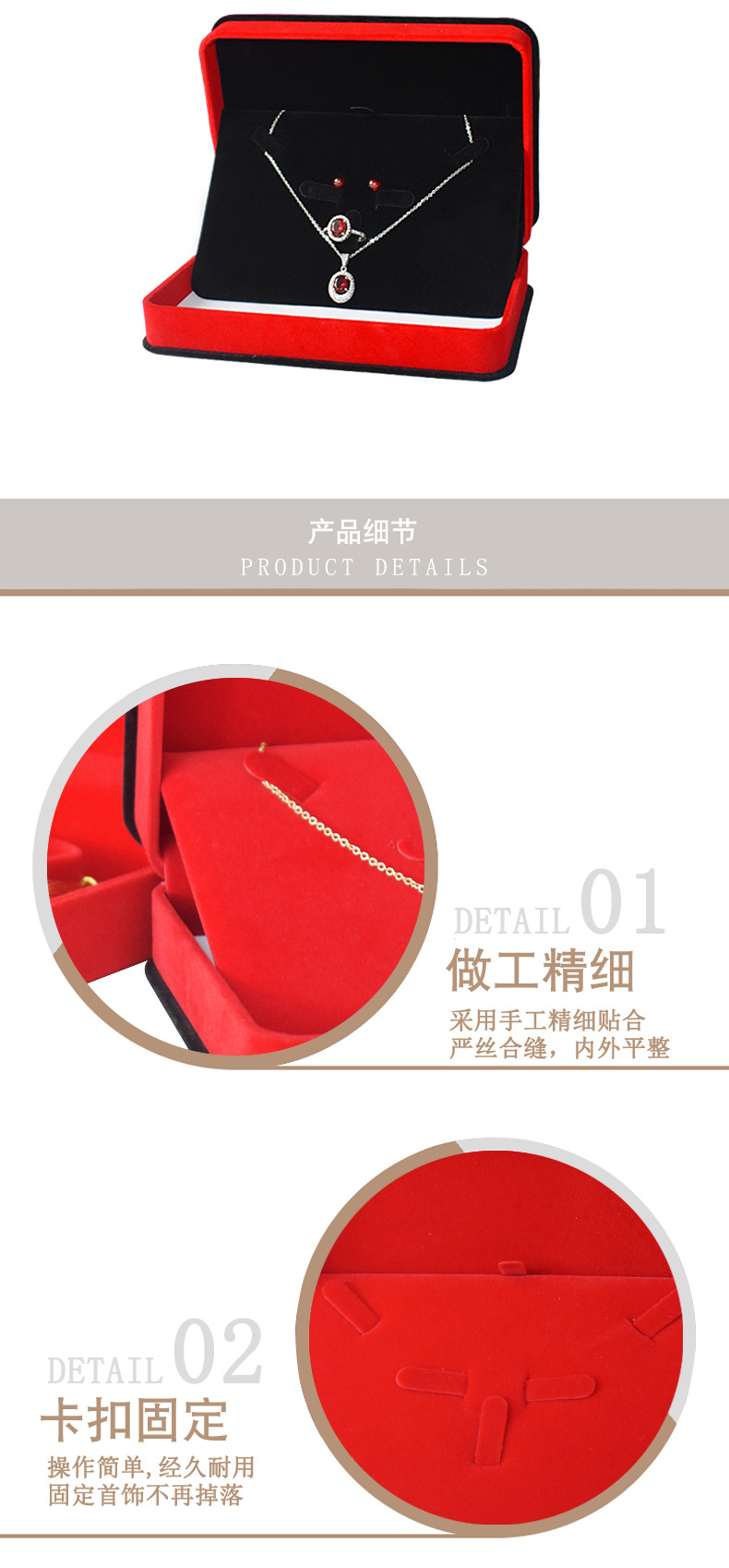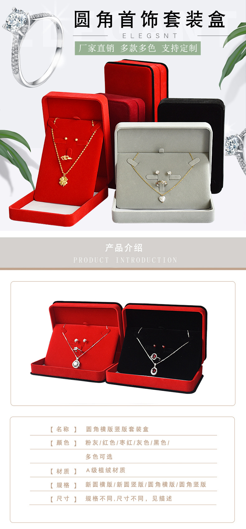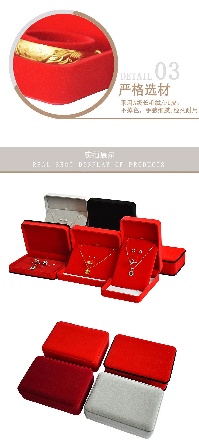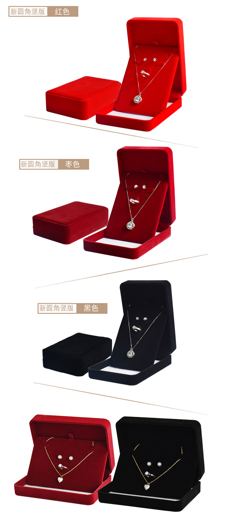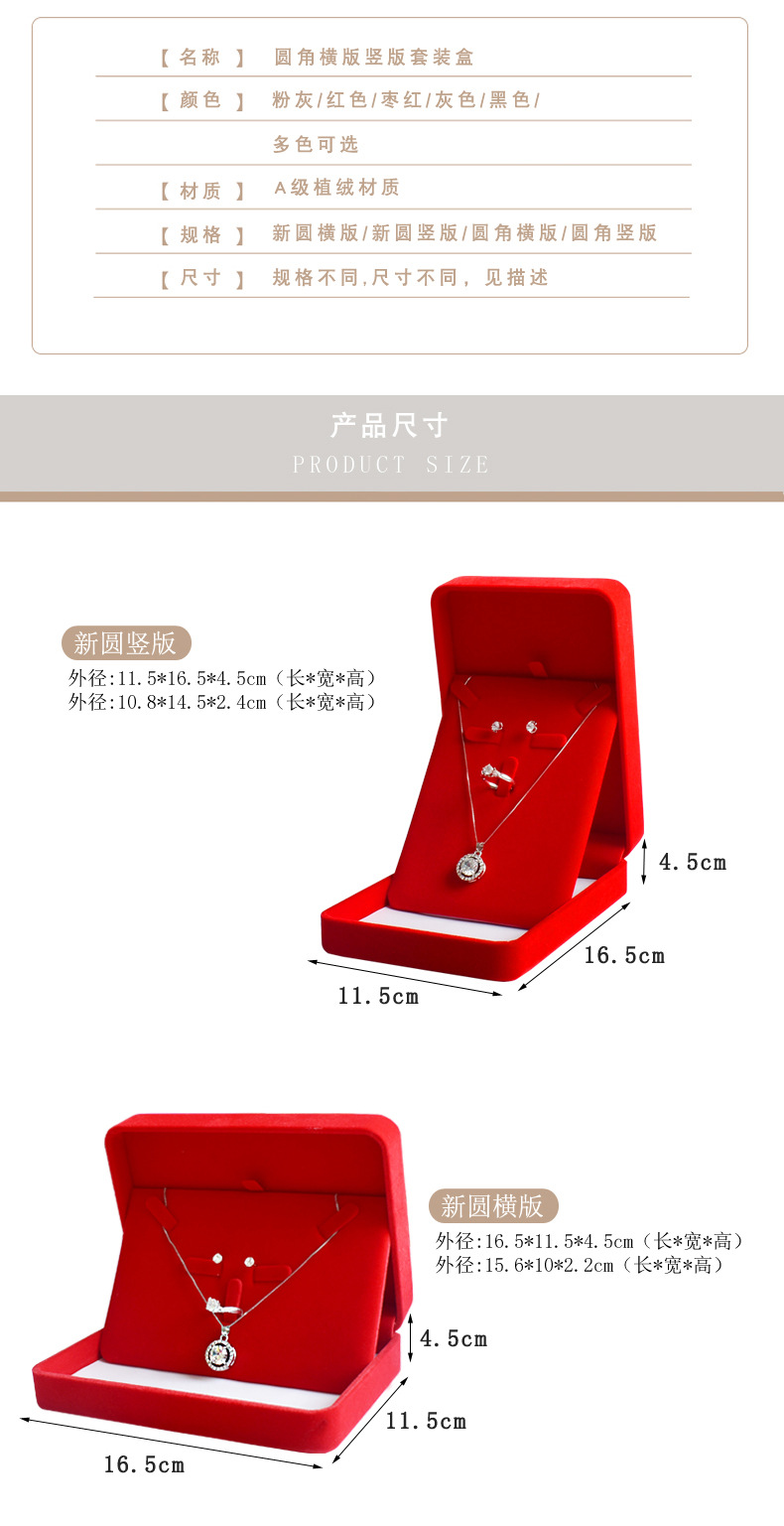 卸売りのフランネルのアクセサリーのセットの箱の指輪のネックレスのピアスのプレゼントの箱のアクセサリーの3つのセットの収納箱の工場は卸売りします。
