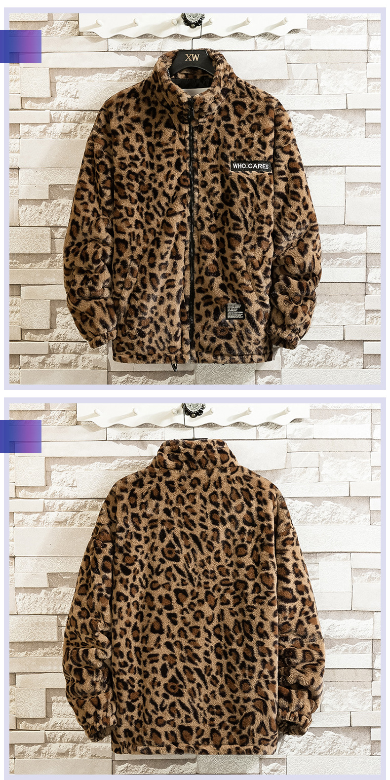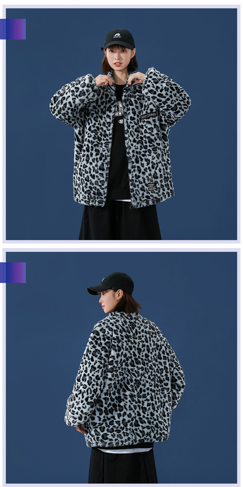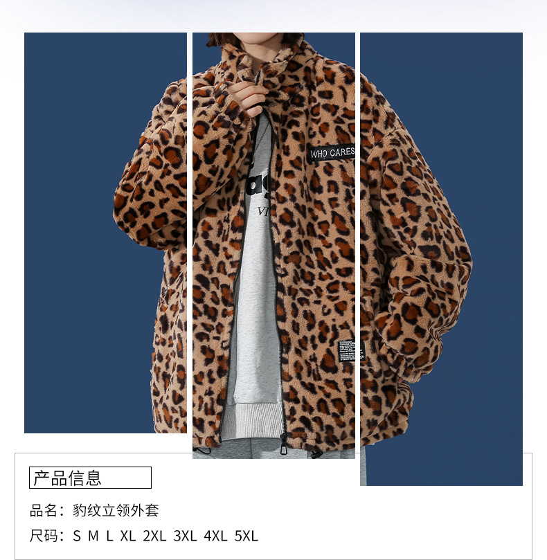2021秋冬の新型紳士服のファッションブランドのゆったりした短いモデルのぬいぐるみのヒョウ柄のジャケットの綿服の綿服のカップルのスタンドカラーのコート