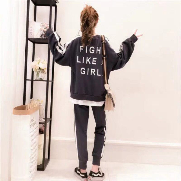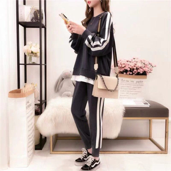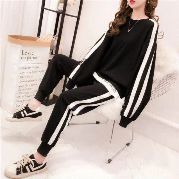 大きいサイズのレディーススーツ2025春秋新作ぽっちゃりさん向け若見え着痩せ長袖スウェットスポーツカジュアルツーピースセット