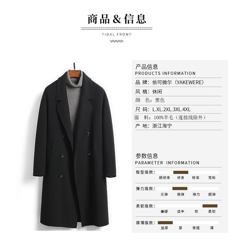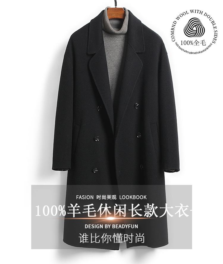 25新商品 ウール100% カシミヤフリーコート ロング両面ウールコート メンズ 高級ウールジャケット 卸売