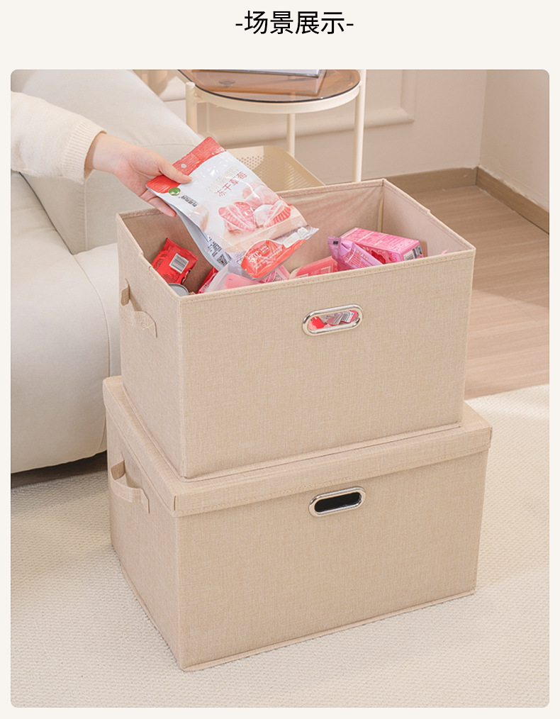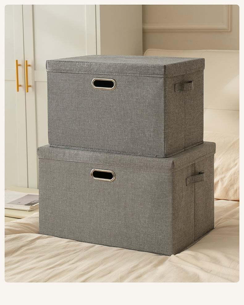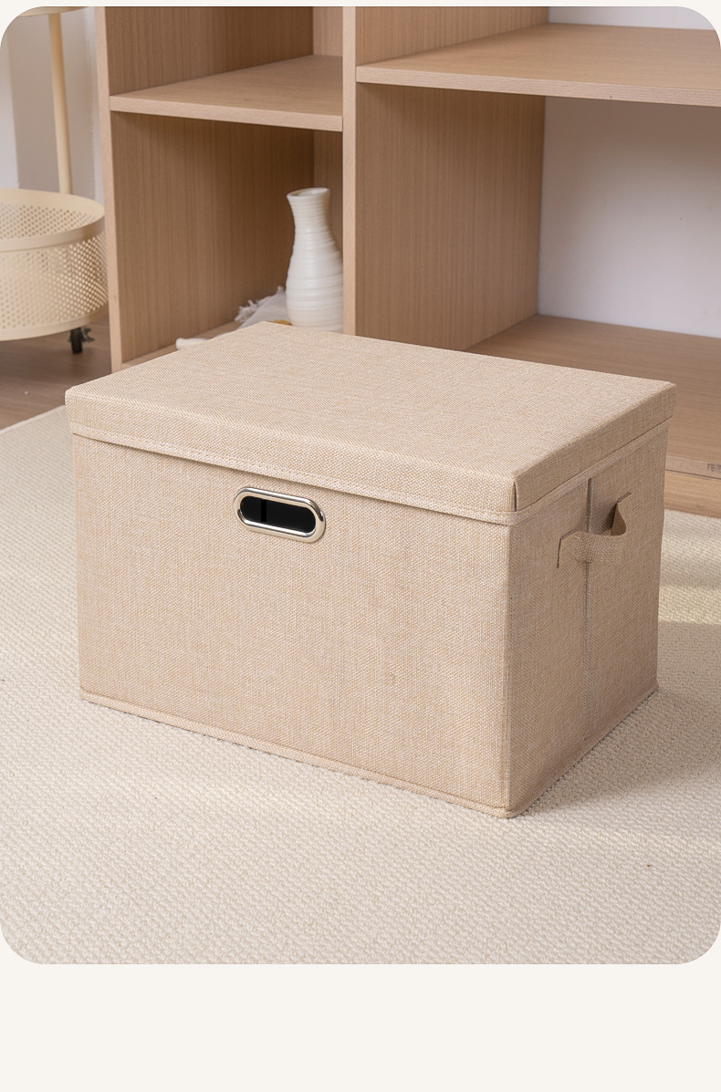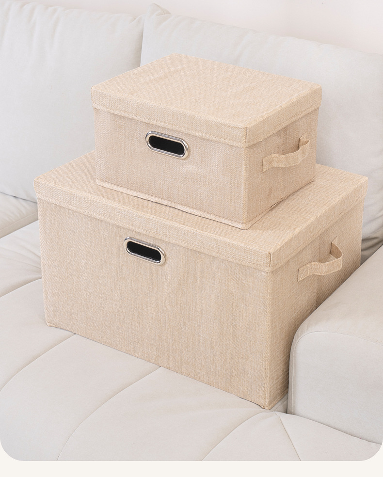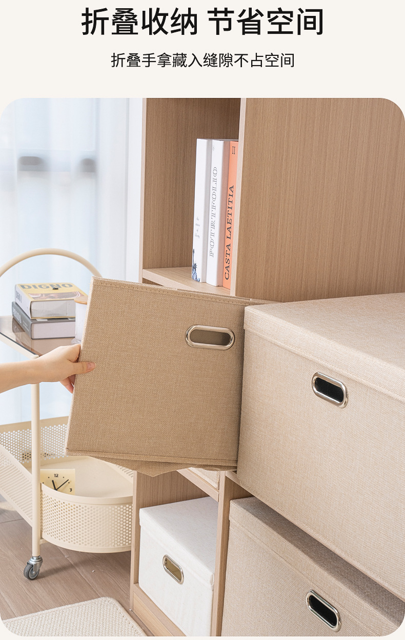 クロスボーダー綿麻蓋付き収納ボックス折りたたみ可能引き出し衣類タンス収納整理箱布芸玩具収納ボックス