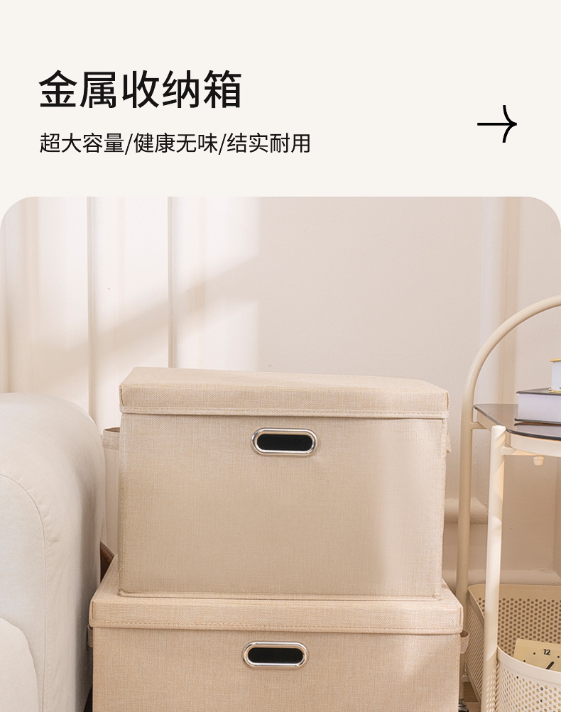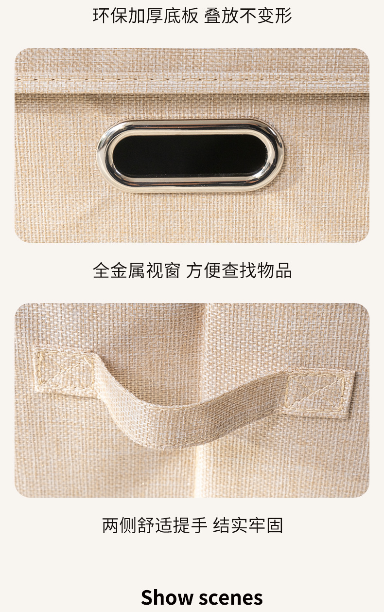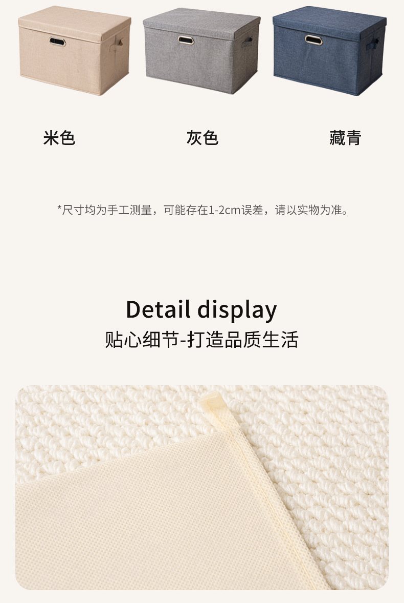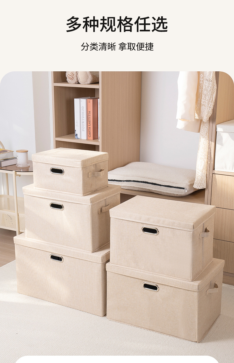 クロスボーダー綿麻蓋付き収納ボックス折りたたみ可能引き出し衣類タンス収納整理箱布芸玩具収納ボックス