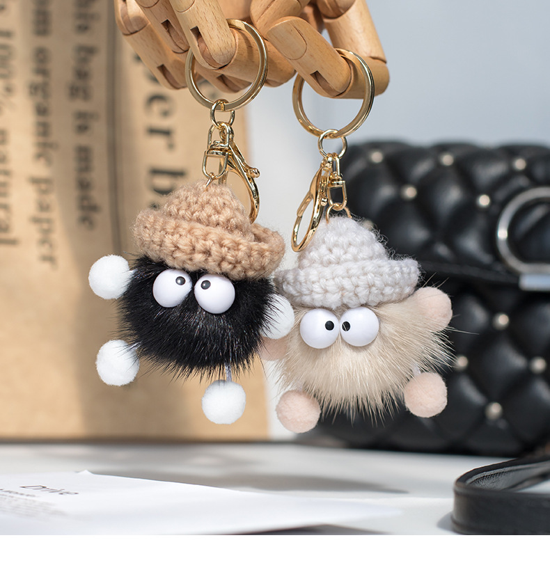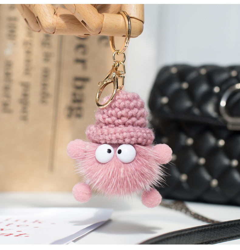 ミンク毛皮の小さなブリケット人形車のキーホルダーぬいぐるみペンダントウール帽子人形新しいエルフ毛皮ボール