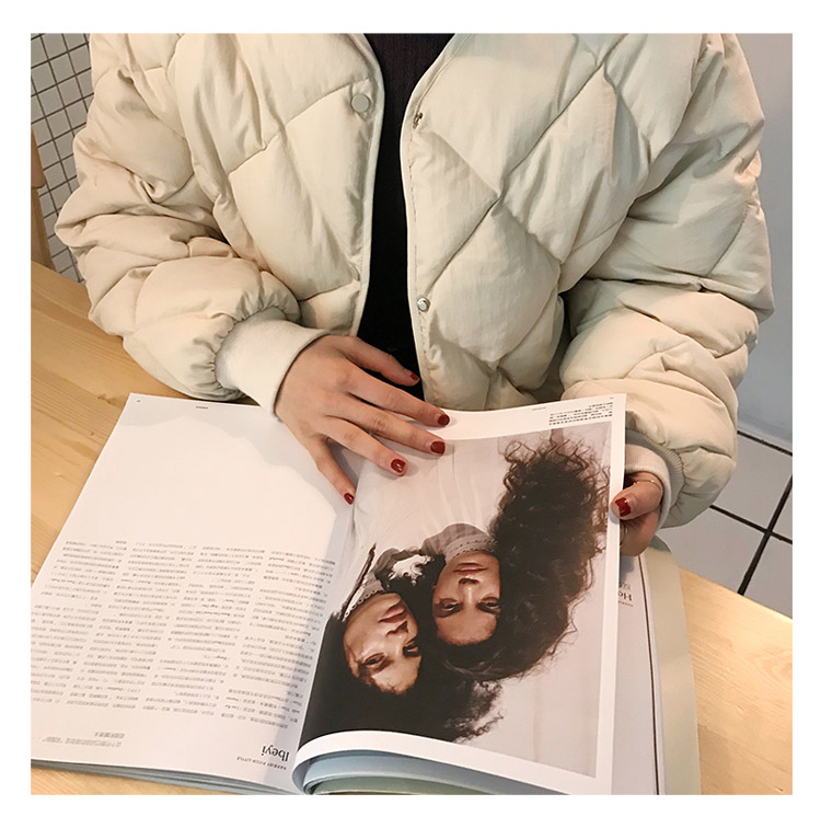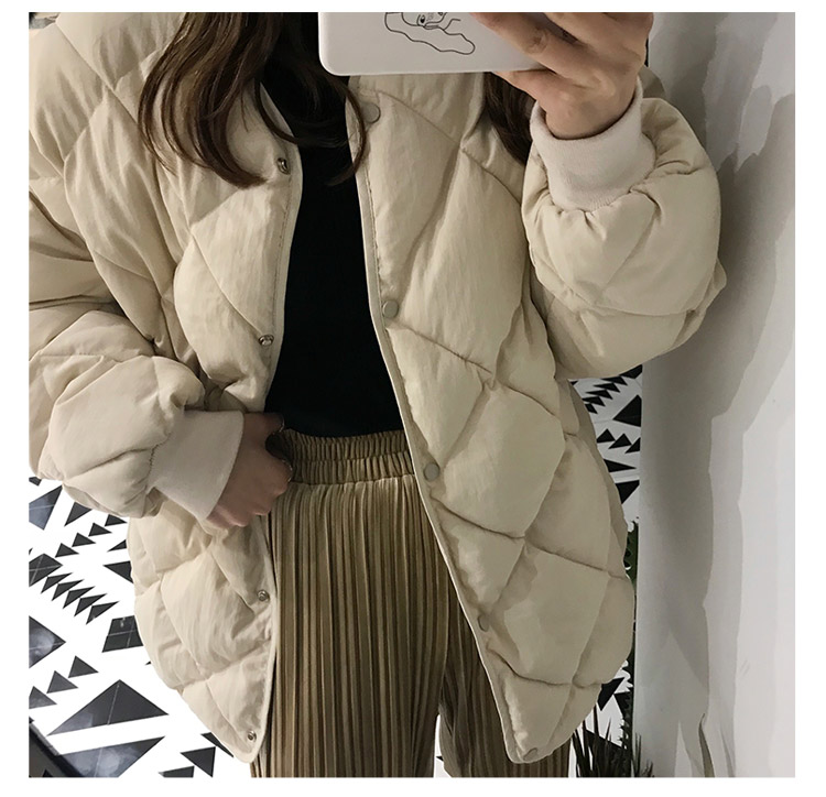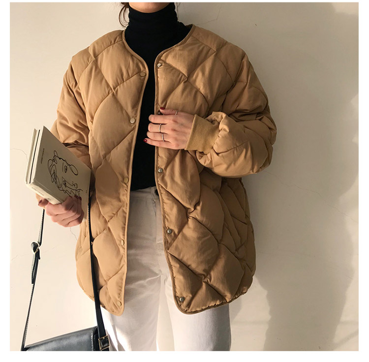 楽天2024秋冬日韓新型シンプル菱格厚綿長袖丸襟コート綿服学生女性
